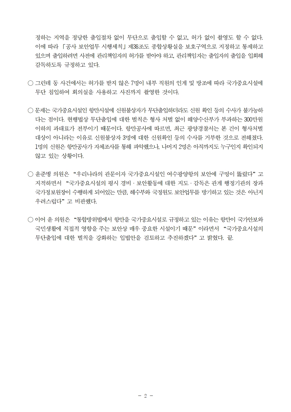 [윤준병 의원 국정감사 보도자료] 윤준병 의원_ 여수광양항만공사 보안 구멍 뚫렸다