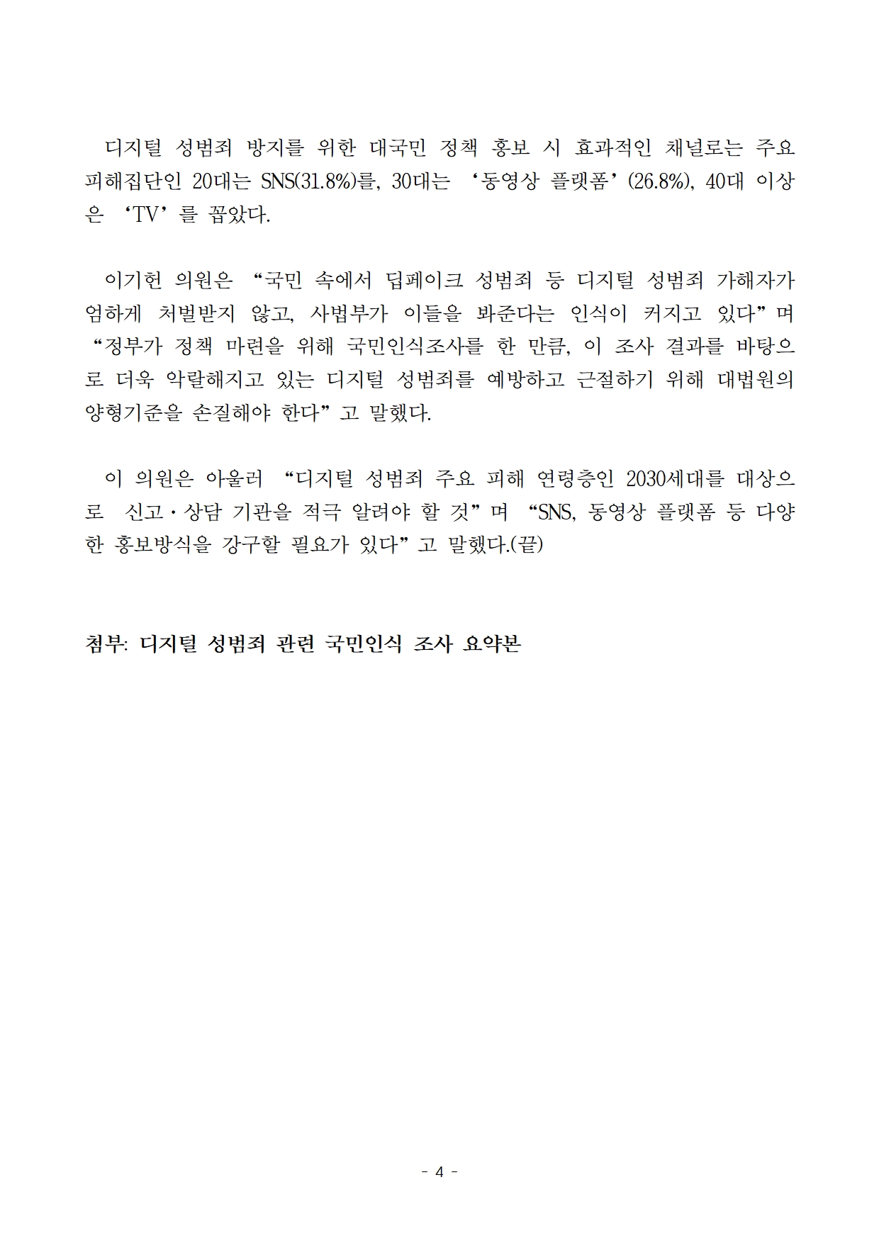 [이기헌 의원(고양시 병) 보도자료] 2030남성들 '성범죄' '디지털 성범죄' 심각성 별로