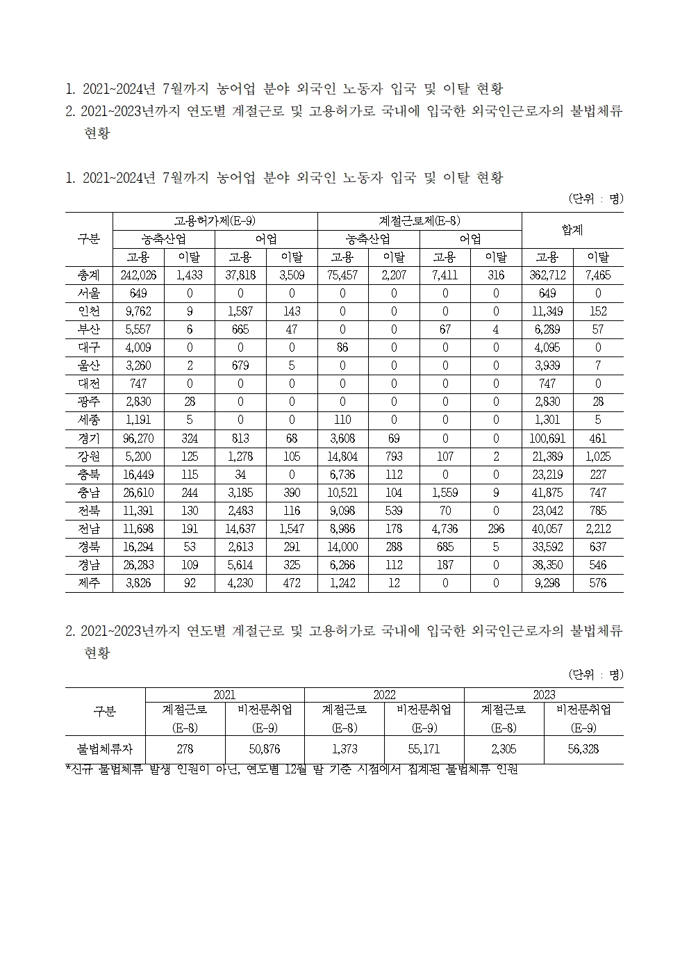 [윤준병 의원 국정감사 보도자료] 최근 3년간 국내 입국한 농어업 분야 외국인 노동자 이탈 7_465명