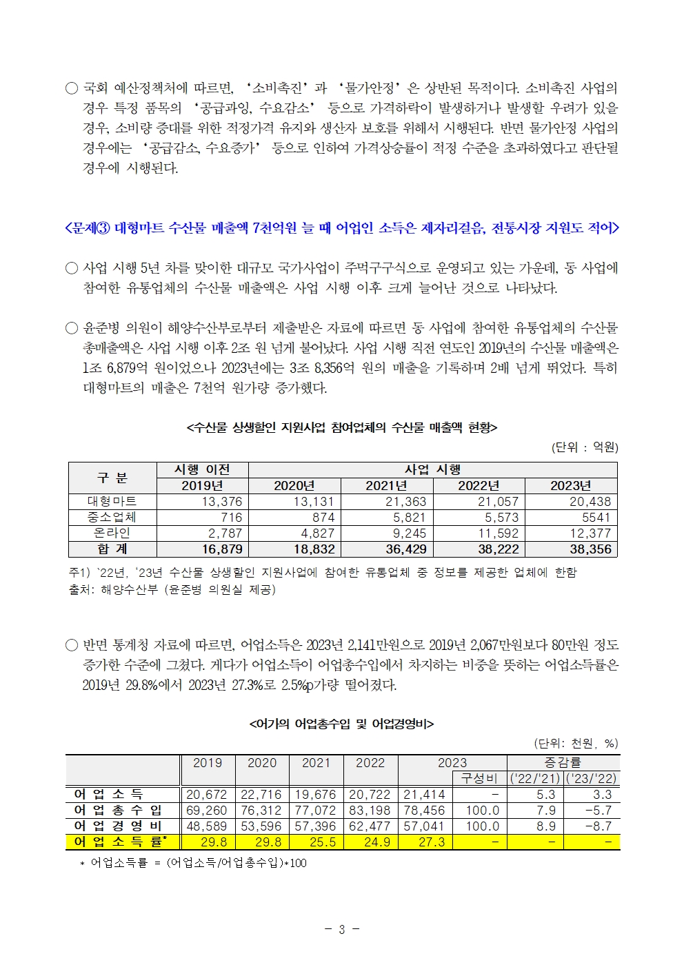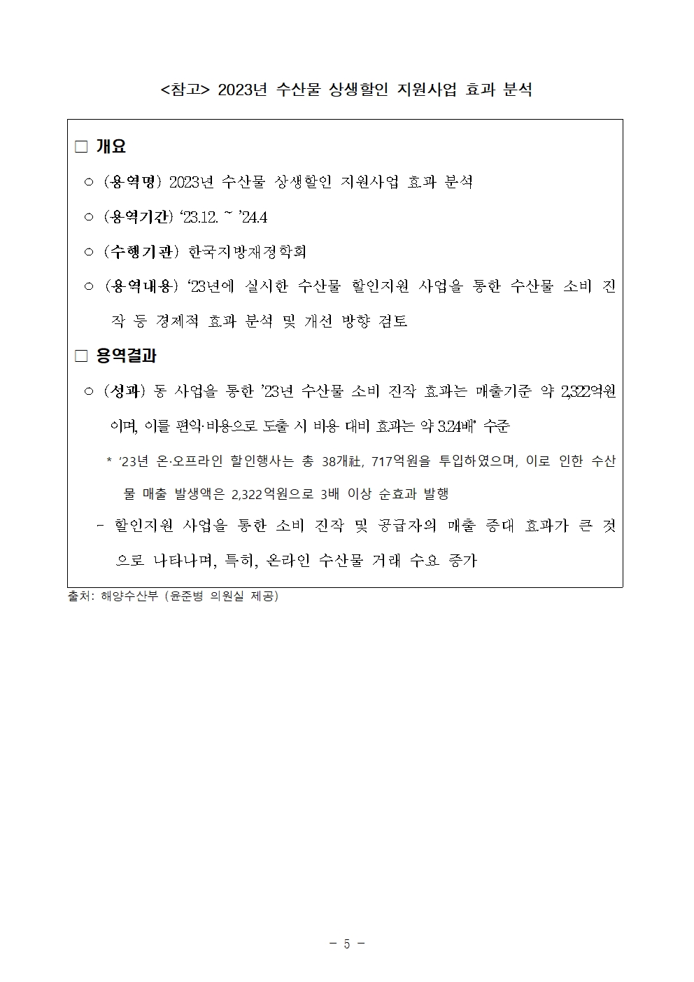 2401008 [윤준병 의원 국정감사 보도자료] 혈세 쏟아부은 수산물 할인사업_ 대형마트 수산물 매출 7천억 늘었다.hwp