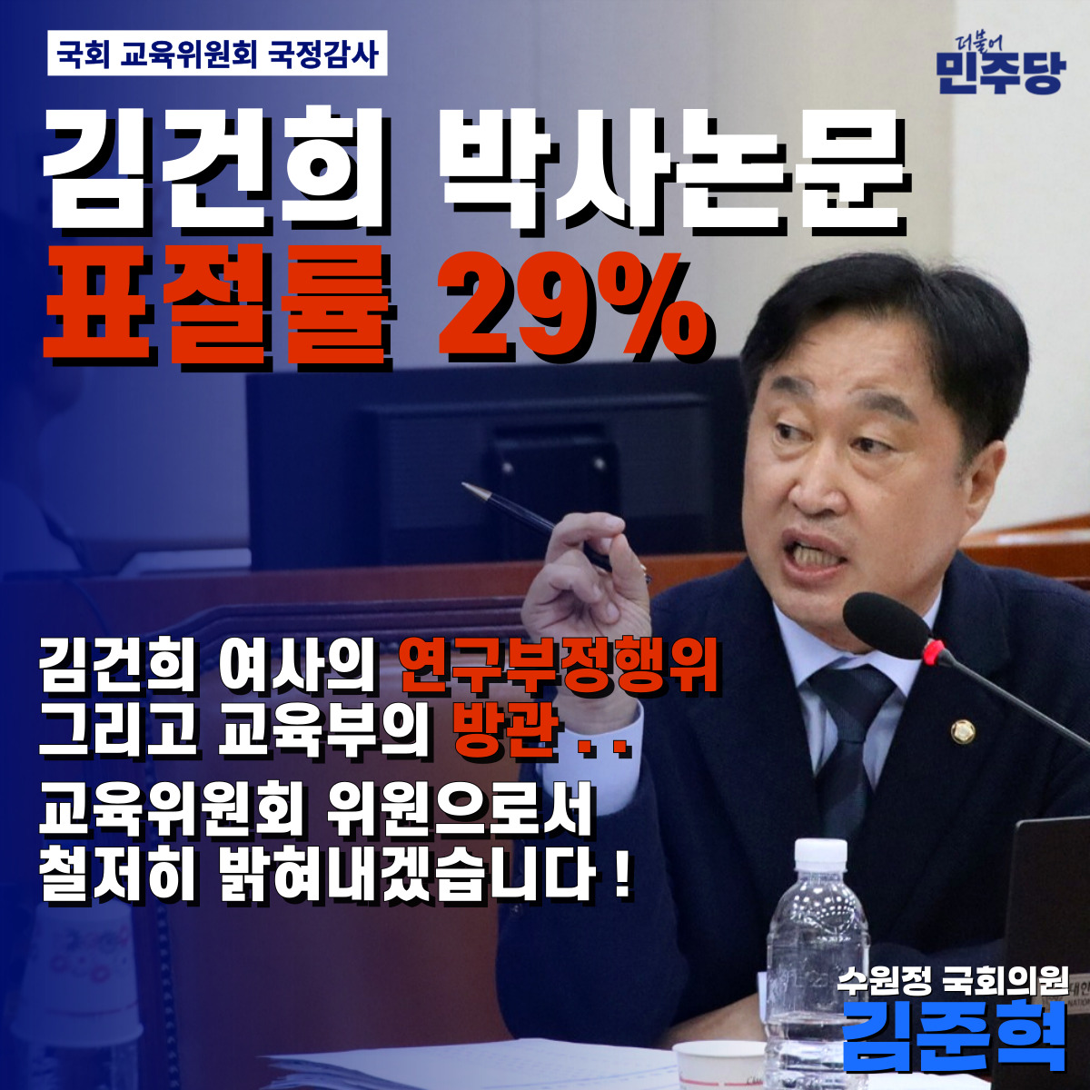 [국회의원 김준혁 국정감사 카드뉴스] 김건희 국민대 박사논문 표절률 29%지만 표절이 아니다?