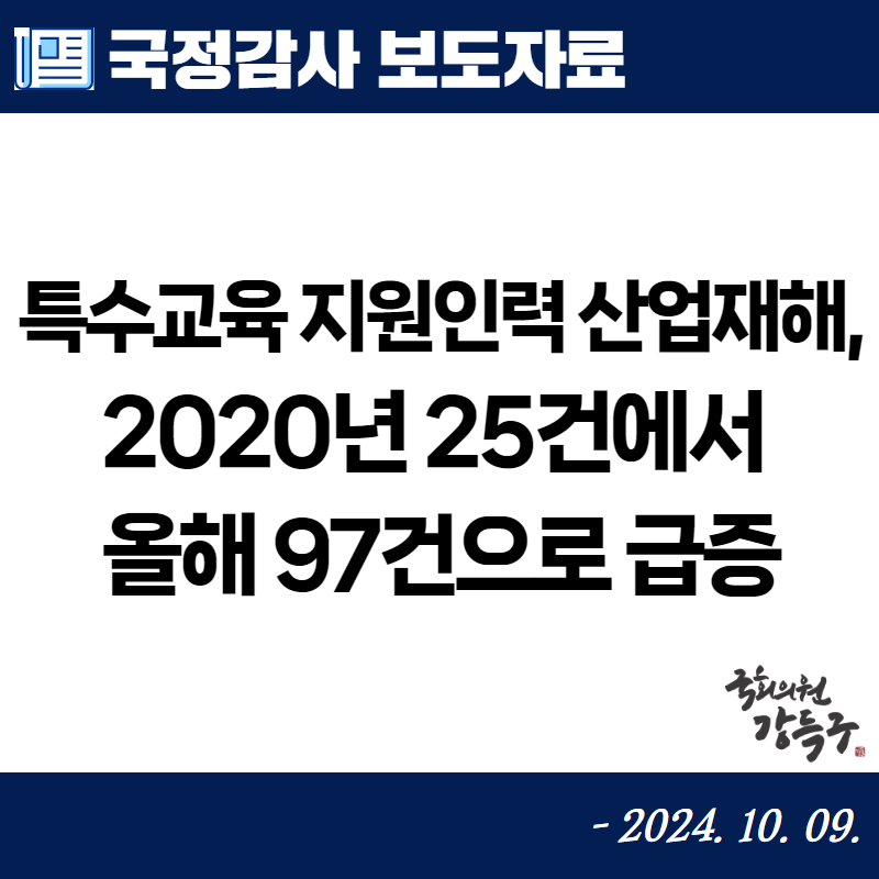 [국회의원 강득구] 특수교육 지원인력 산업재해, 2020년 25건에서 올해 97건으로 급증