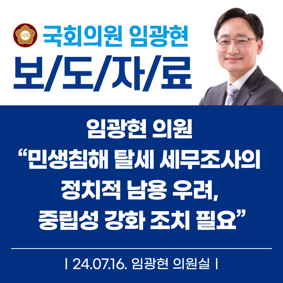 [임광현의원 국감 보도] 임광현 의원 “민생침해 탈세 세무조사의 정치적 남용 우려, 중립성 강화 조치 필요”