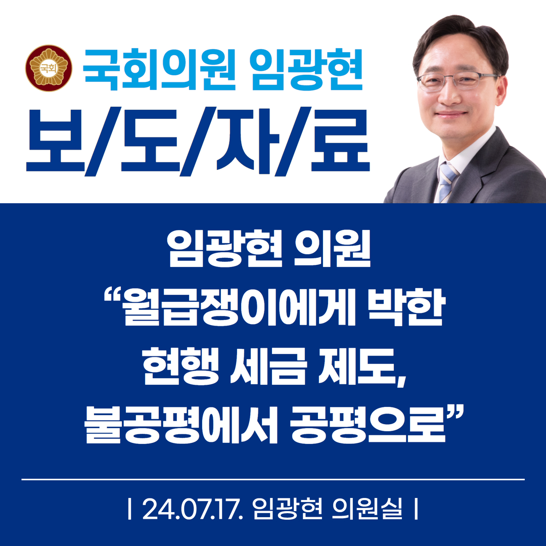 [임광현의원 국감 보도] 월급쟁이에게 박한 현행 세금 제도, 불공평에서 공평으로