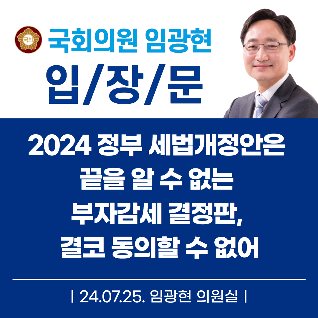 [임광현의원 국감 보도] 2024 정부 세법개정안은 끝을 알 수 없는 부자감세 결정판, 결코 동의할 수 없어