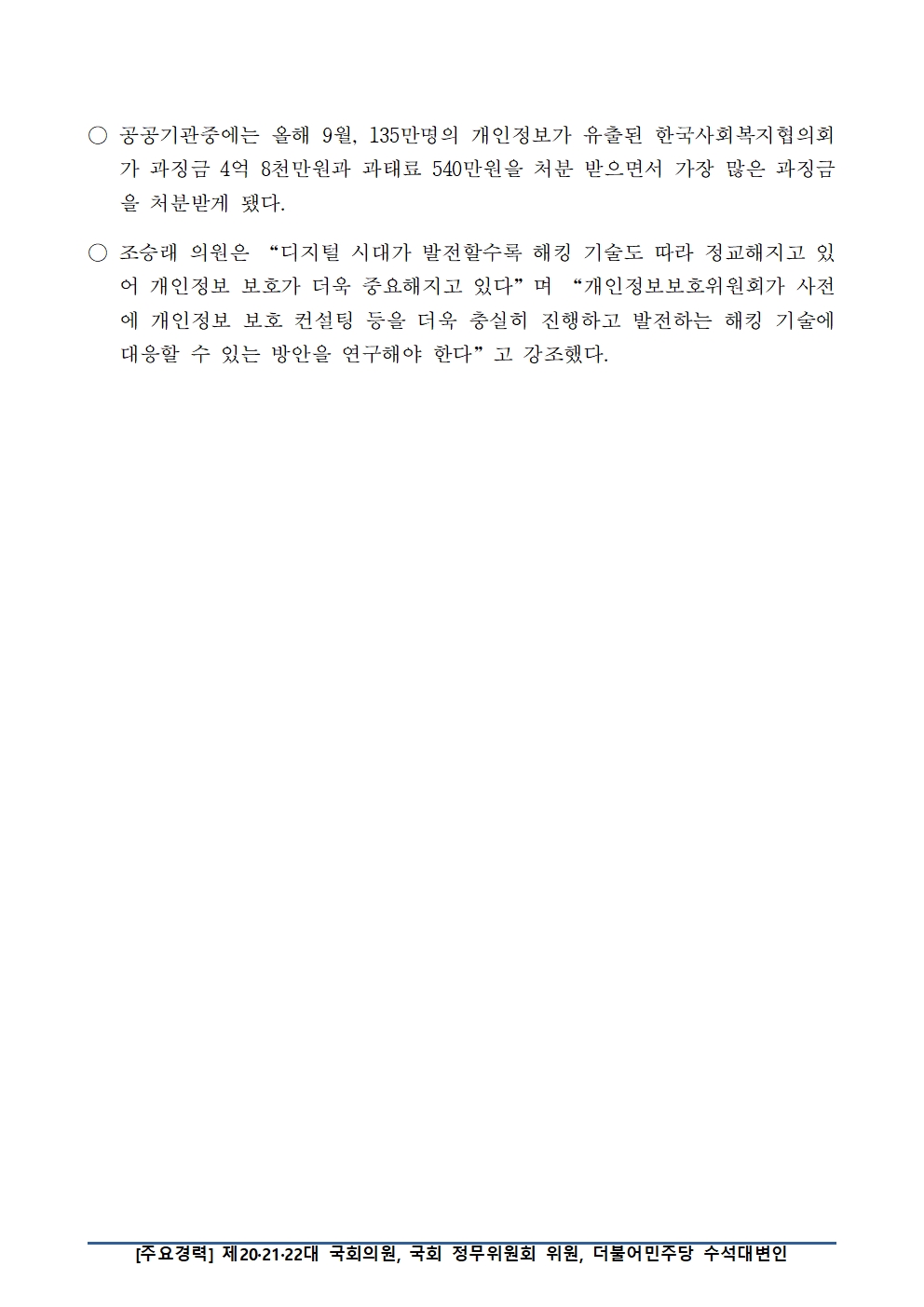 [국회의원 조승래] 개보위, 지난 4년간 해킹으로 인한 개인정보 유출 148건 처분
