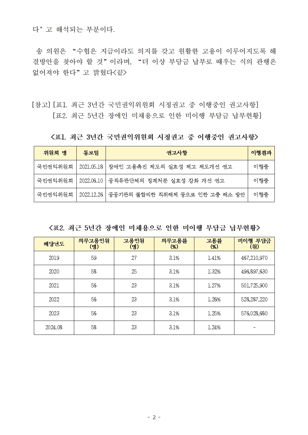 보도자료_송옥주의원실_수협_장애인_고용의무이행_미흡.hwp