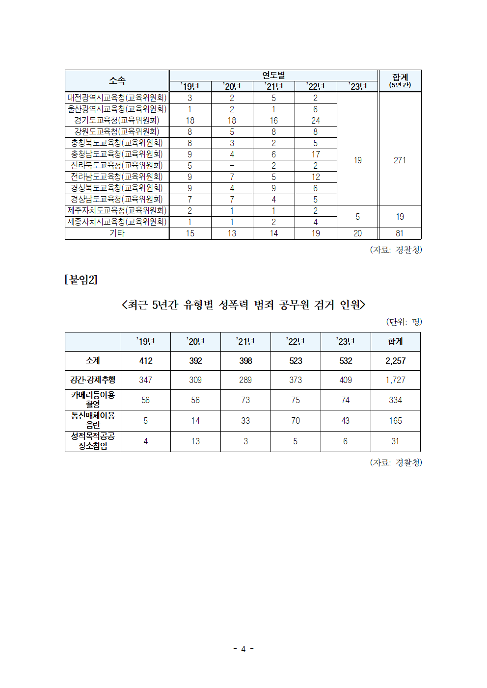 [한병도의원]2024행안위국정감사보도자료(3)_尹정부 출범 후 공무원 성폭력 대폭 늘어... 지난 5년간 경찰청 374명으로 가장 많아.hwp