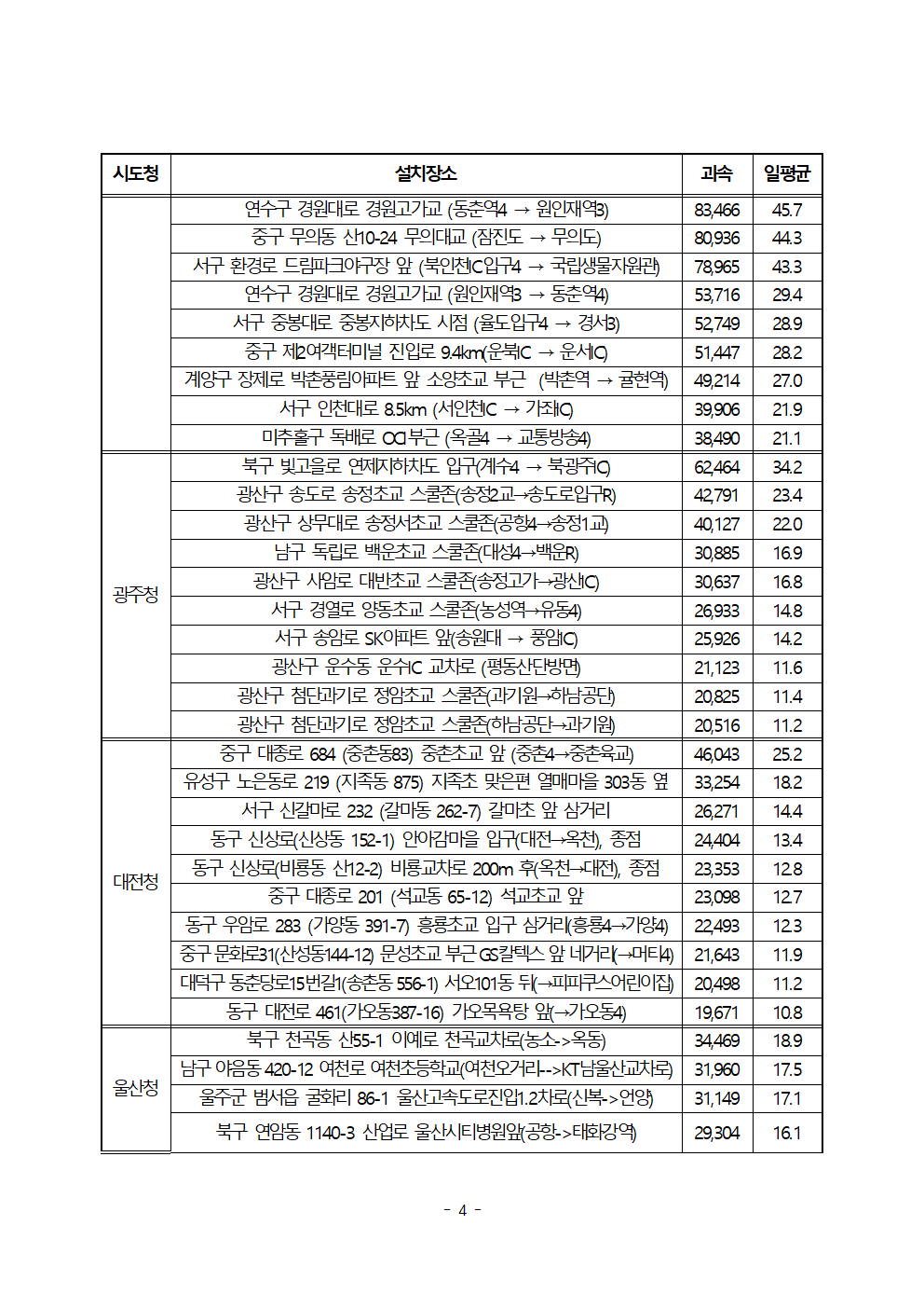 [한병도의원]2024행안위국정감사보도자료(12)전국에서 속도위반 가장 많은 곳은 ‘강남순환로 관악IC’... 5년간 20만 7천건 단속.hwp