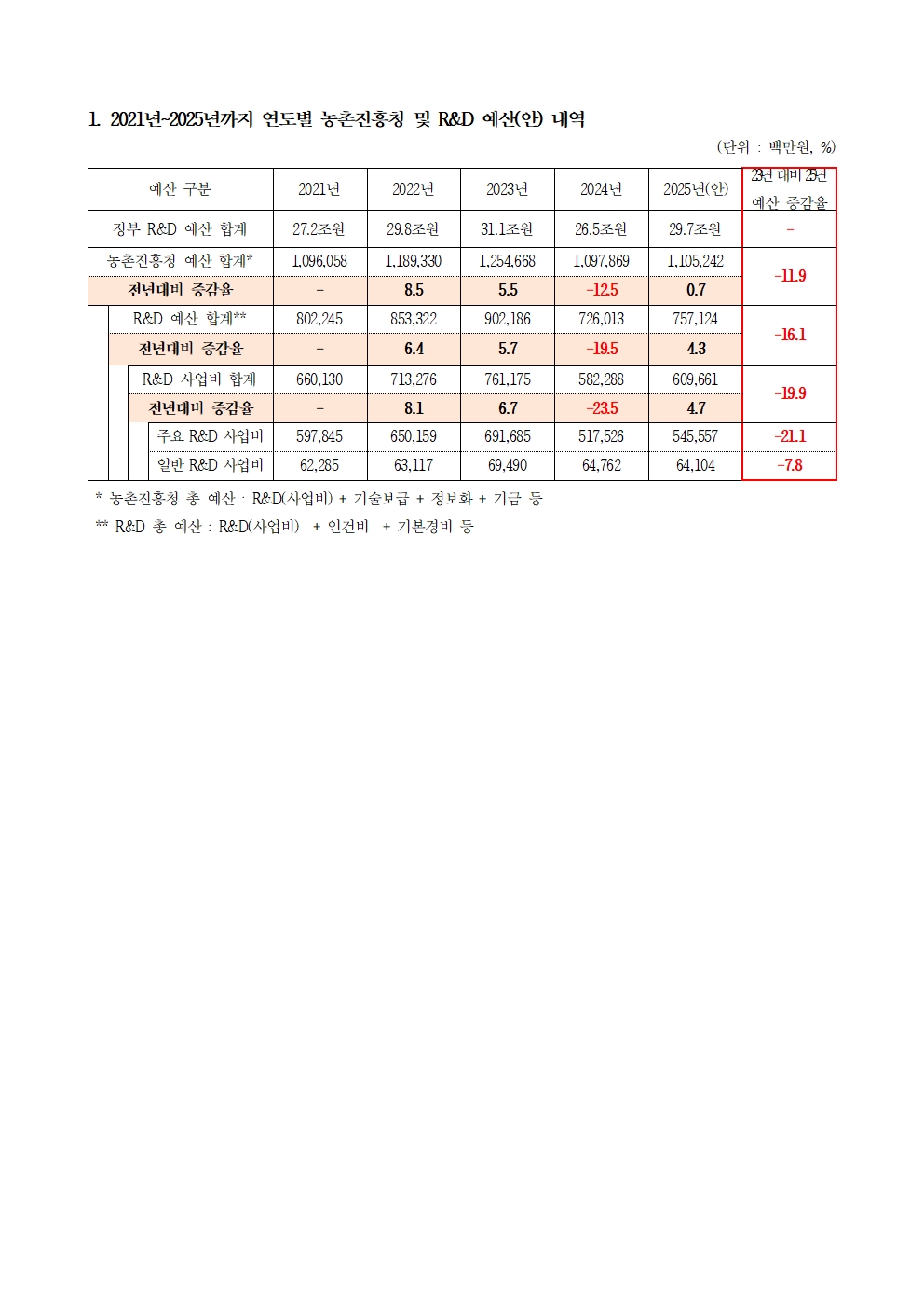 241011 [윤준병 의원 국정감사 보도자료] 윤준병 의원 “내년도 농진청 R&D 사업비_ 23년 대비 여전히 20% 부족”.hwp
