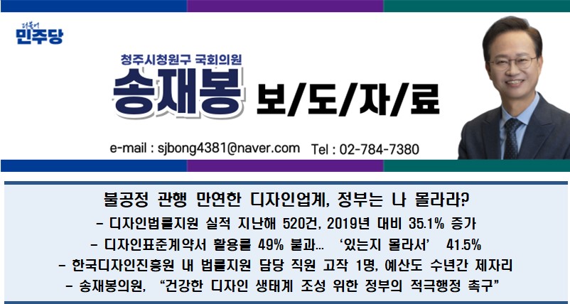 [국회의원 송재봉]불공정 관행 만연한 디자인업계, 정부는 나 몰라라?