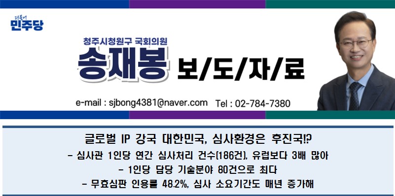 [국회의원 송재봉]글로벌 IP 강국 대한민국, 심사환경은 후진국!?