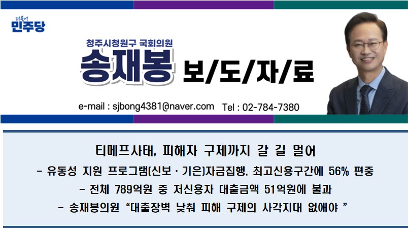 또한“현행 금융기관의 잣대로 티메프사태 피해자들을 대하는 정부의 안이한 태도가 사태 해결을 늦추고 있다”며“피해자들에게 지원의 형평성과 촘촘한 피해구제를 위해서는 추가적인 저금리 정책자금 투입이 시급하다”고 강조했다.