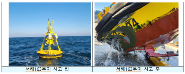 그러나 ‘163부이’가 설치된 지 3개월 만에 데이터 송신에 오류가 발생한 것으로 드러났다. 부이가 5만 톤의 대형 선박과 부딪히면서 상부 전체가 유실되고, 주장비함이 위치한 하부 센서 등이 침수돼 장비가 훼손됐기 때문이다.