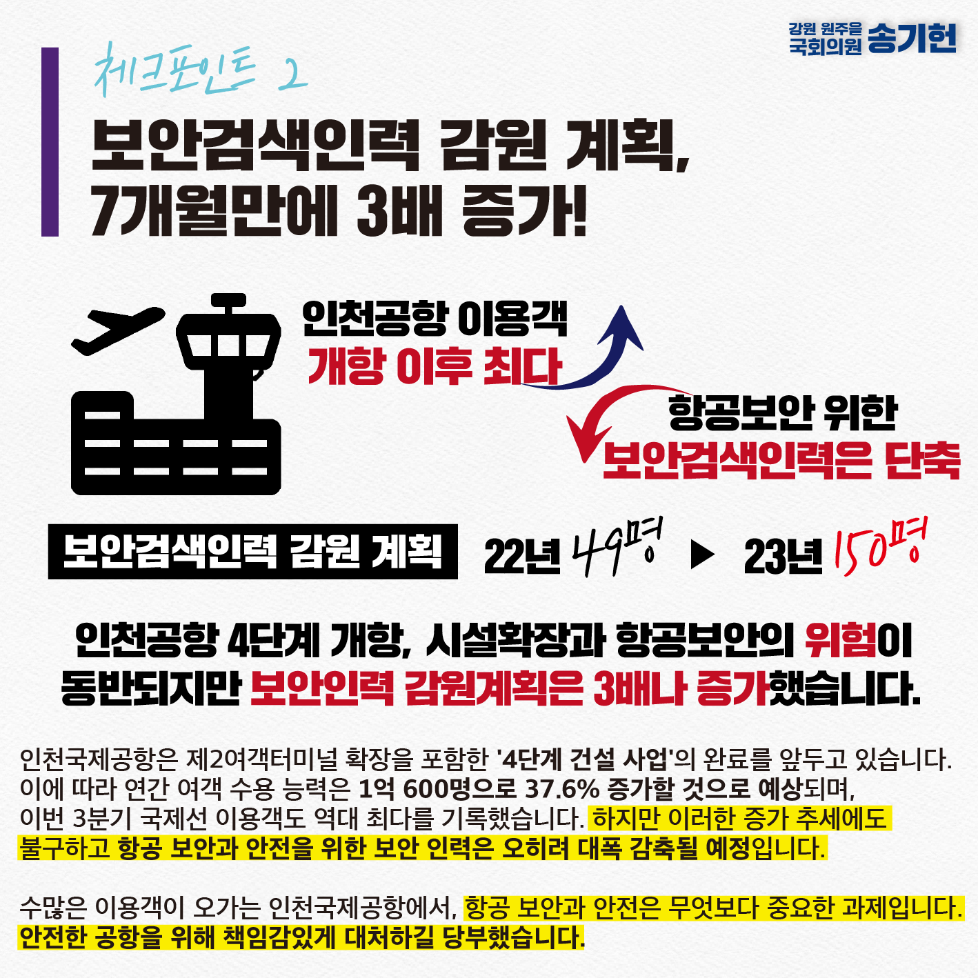 [국회의원 송기헌 카드뉴스] 국정감사 7일차, 송기헌의 체크포인트|인천국제공항공사 외 3개 기관