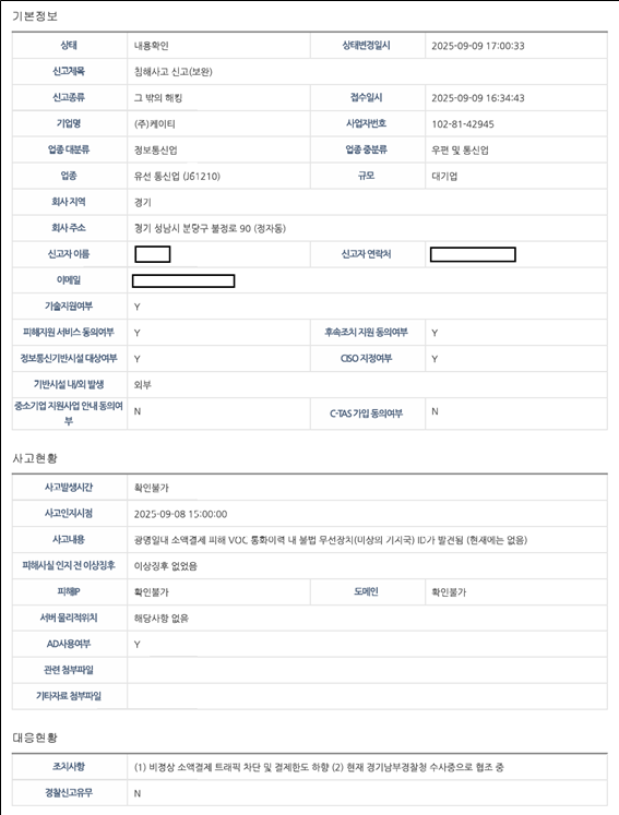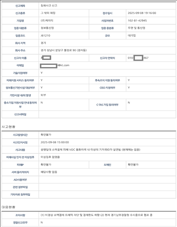 (첨부) KT 침해사고 신고서