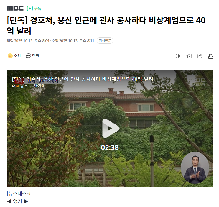 [단독] 경호처, 용산 인근에 관사 공사하다 비상계엄으로 40억 날려
