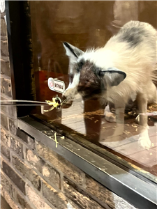 (사진 설명) 사진1 은여우에게 부적절한 먹이(건초)를 지급하는 모습(출처: (사)동물복지연구소 어웨어)