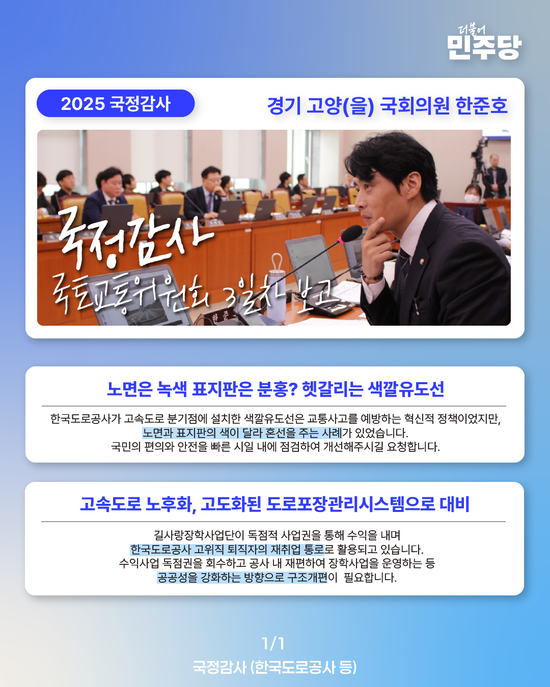 [국회의원 한준호 2025 국정감사 웹자보] 국정감사 3일차 보고