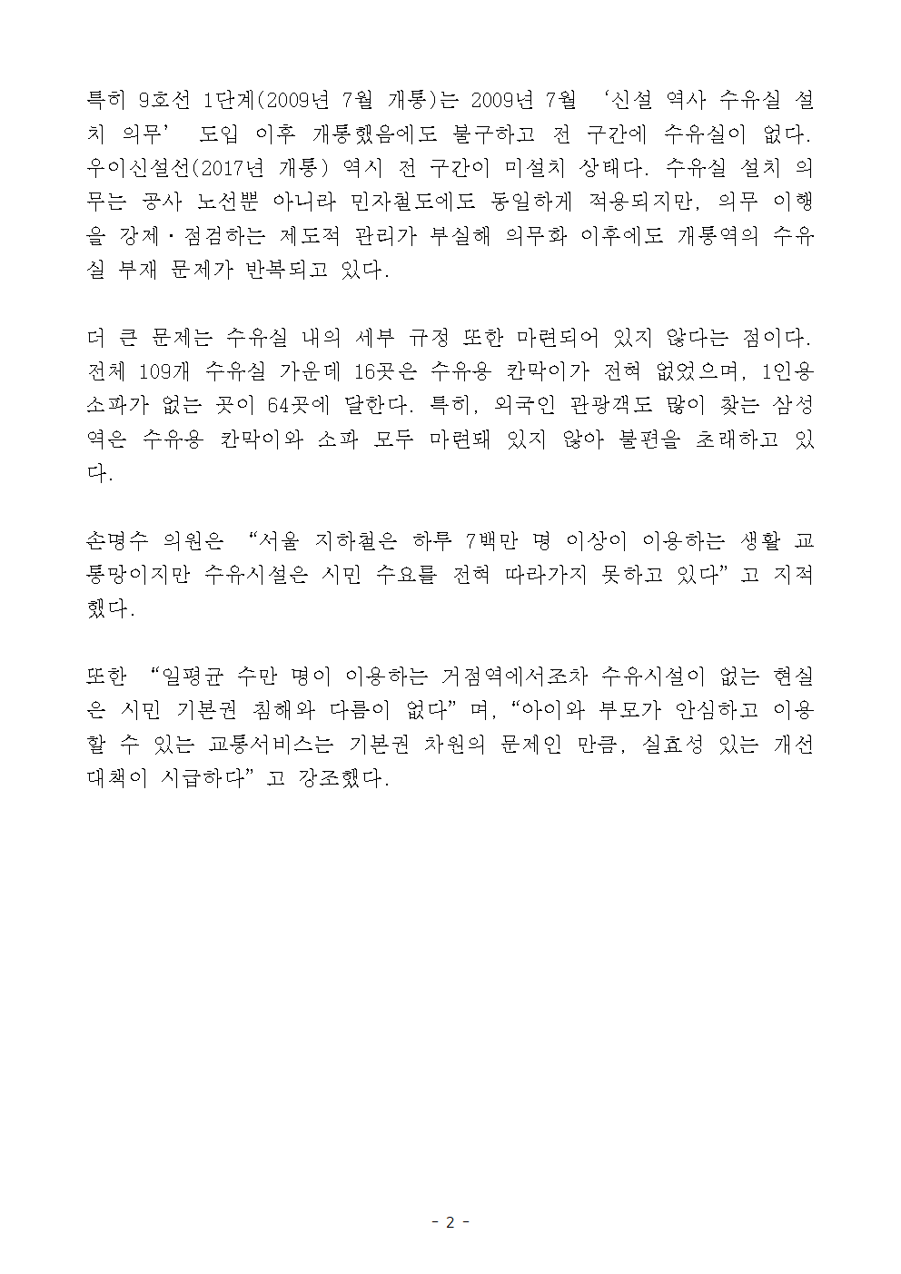 250923_서울지하철_수유실_설치율_31_2%_주요_거점역_대부분_사각지대_손명수의원.hwp