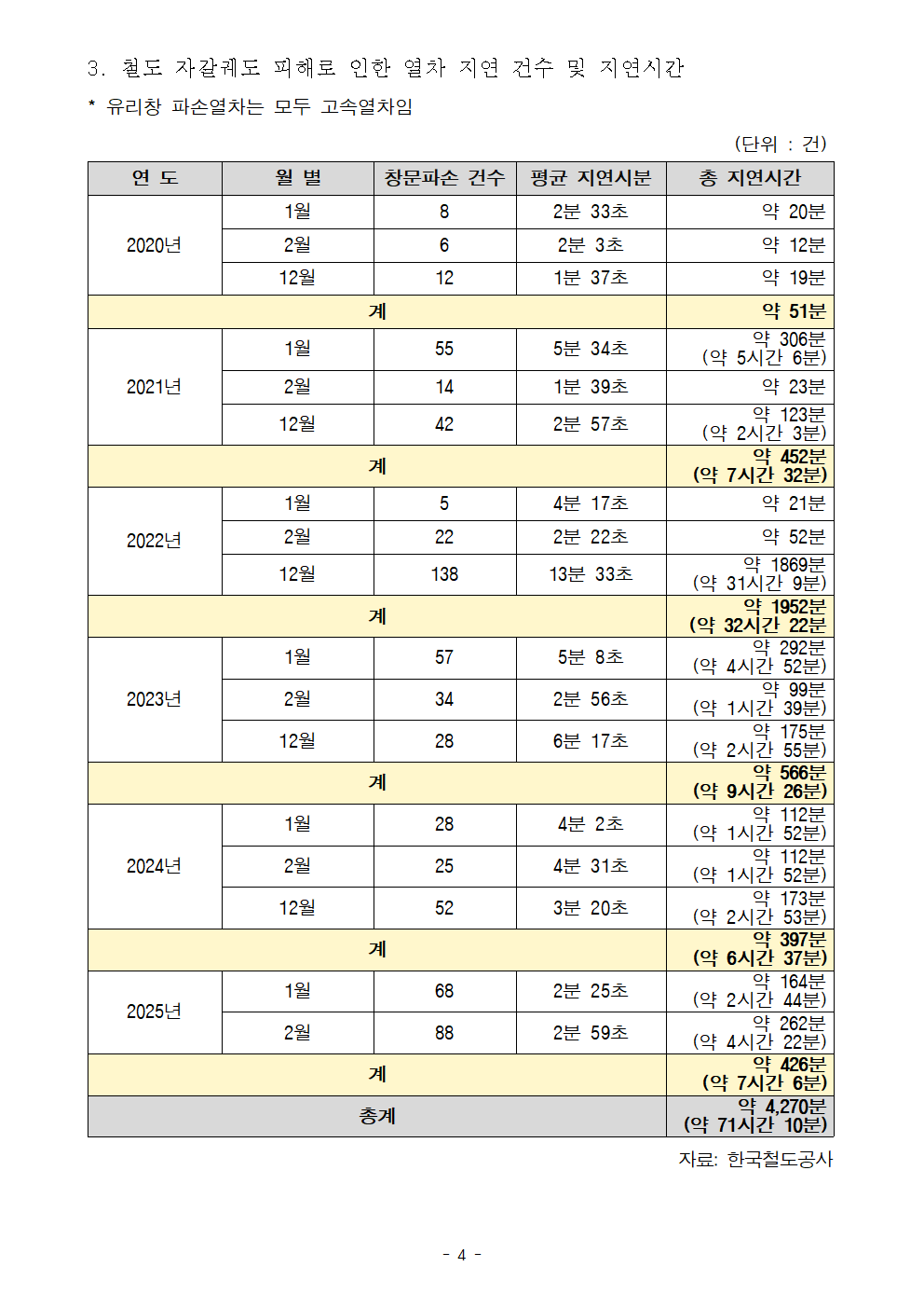251002_5년간_철도_자갈로_인한_고속열차_유리창_파손_663건_손명수의원.hwp