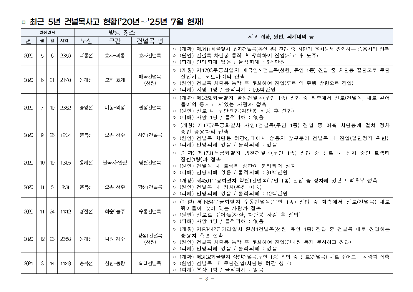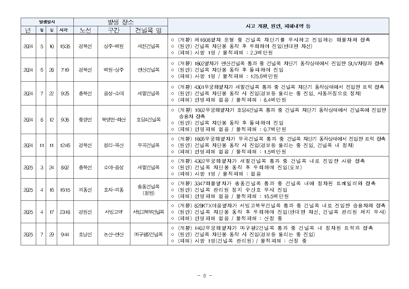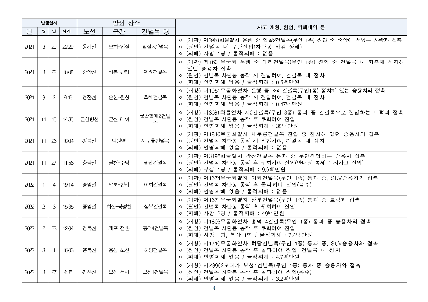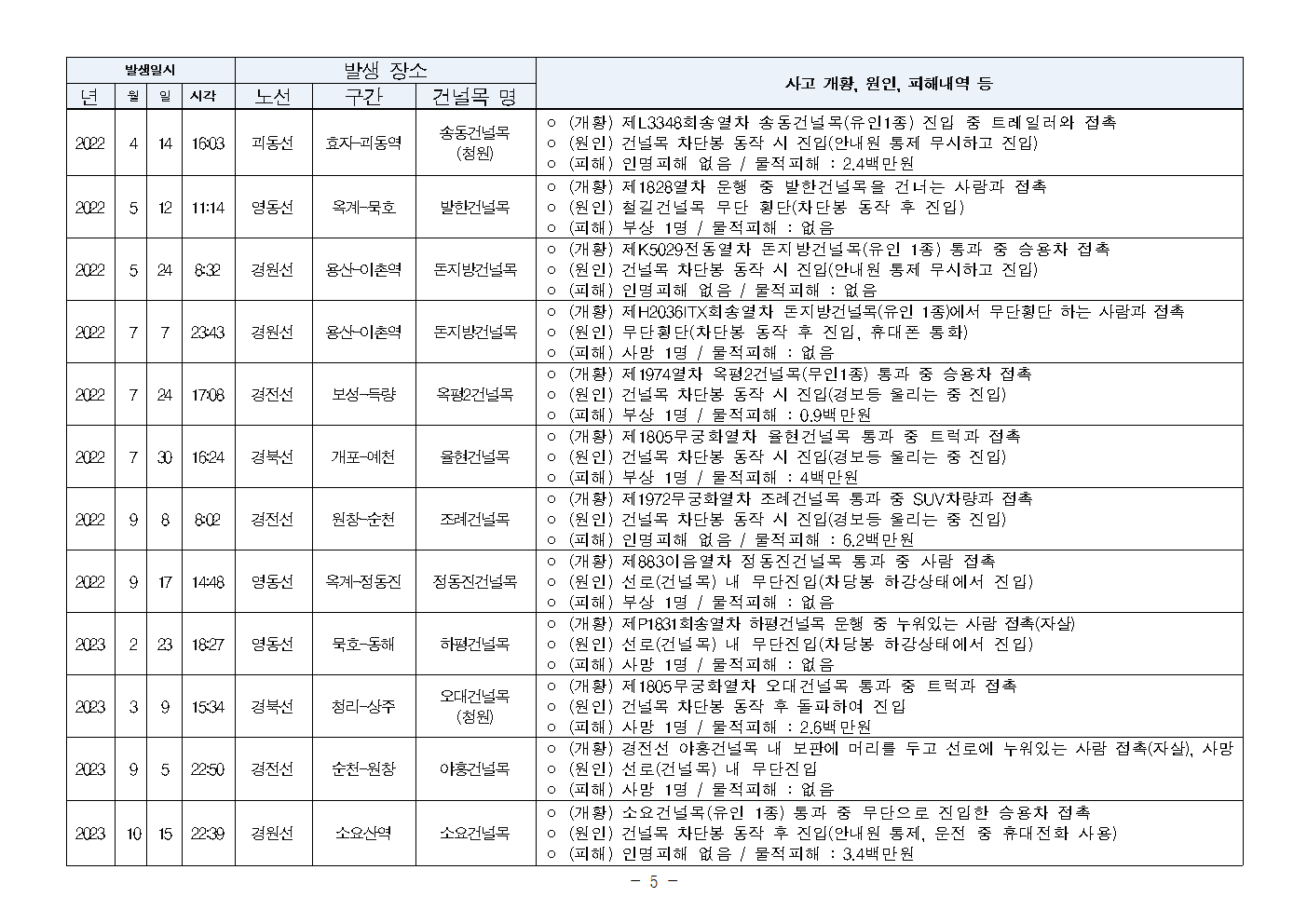 [안태준 의원 보도자료] 5년간 철도 건널목 사고 41건, 사망자도 15명