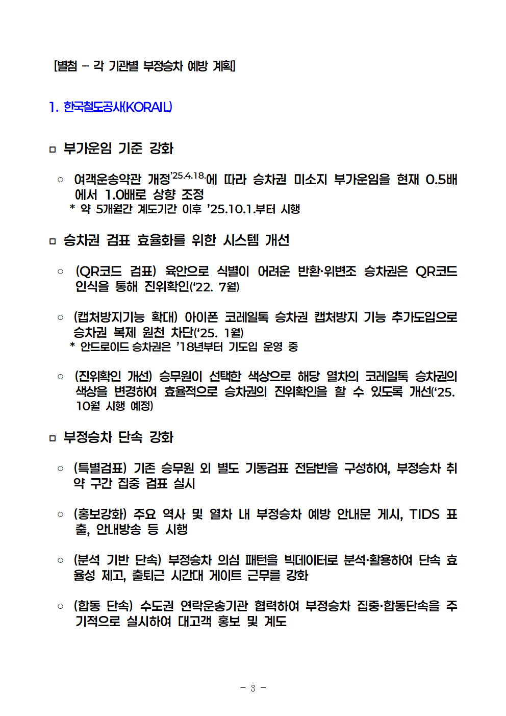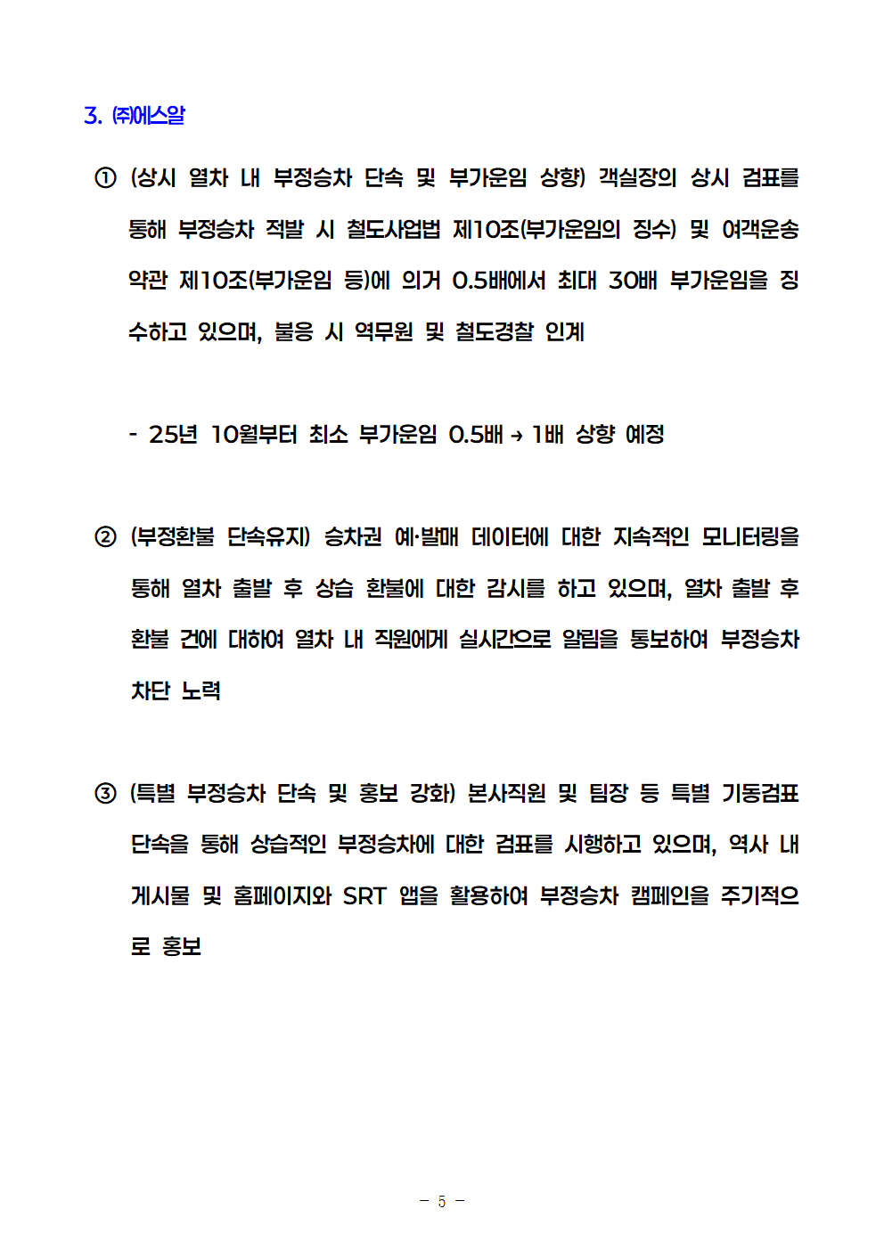 [안태준 의원 보도자료] 작년 열차, 전철 부정승차 적발 5년내 최대!