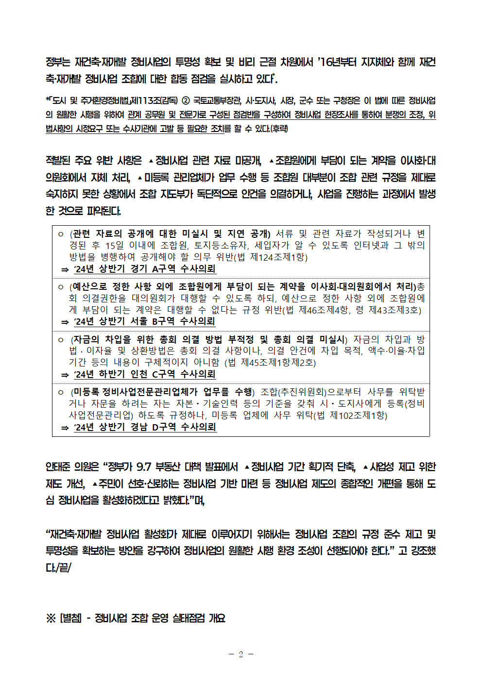 251023_안태준_의원_보도자료_3_5년간_재건축ㆍ재개발_조합의_규정_위반_564건에_달해!.hwp