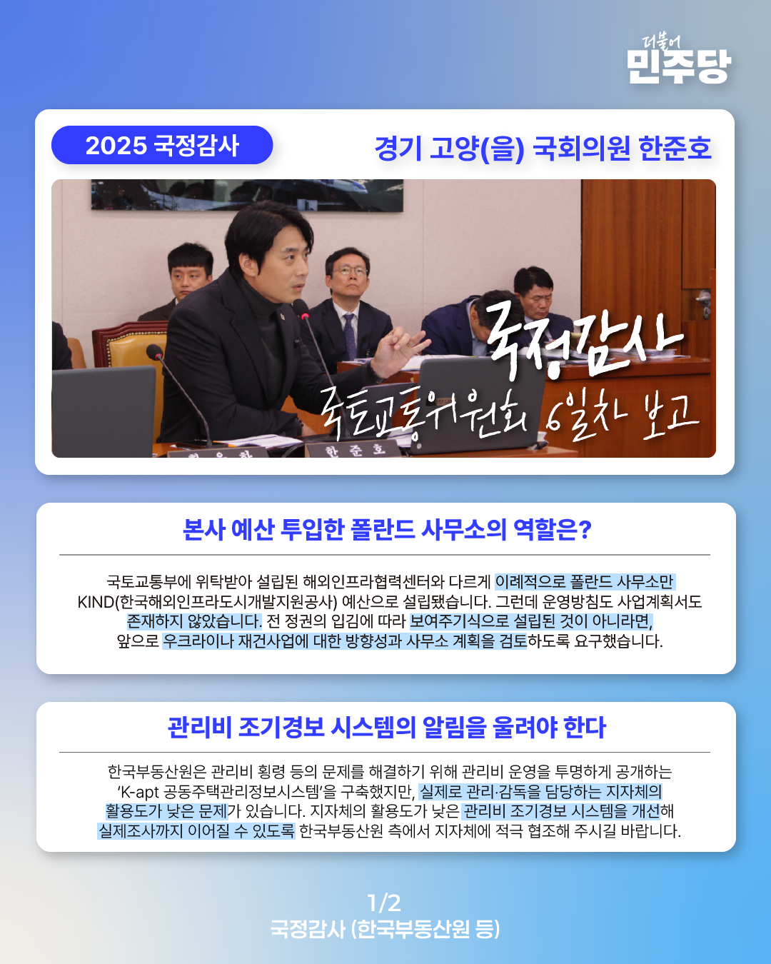 [국회의원 한준호 2025 국정감사 웹자보] 국정감사 6일차 보고
