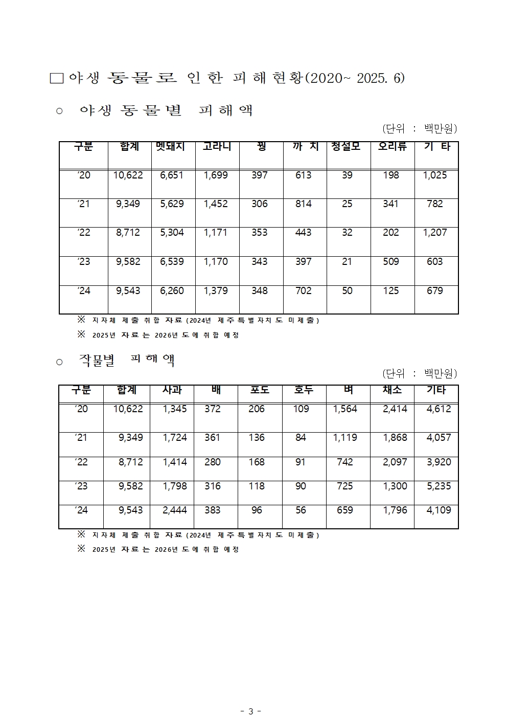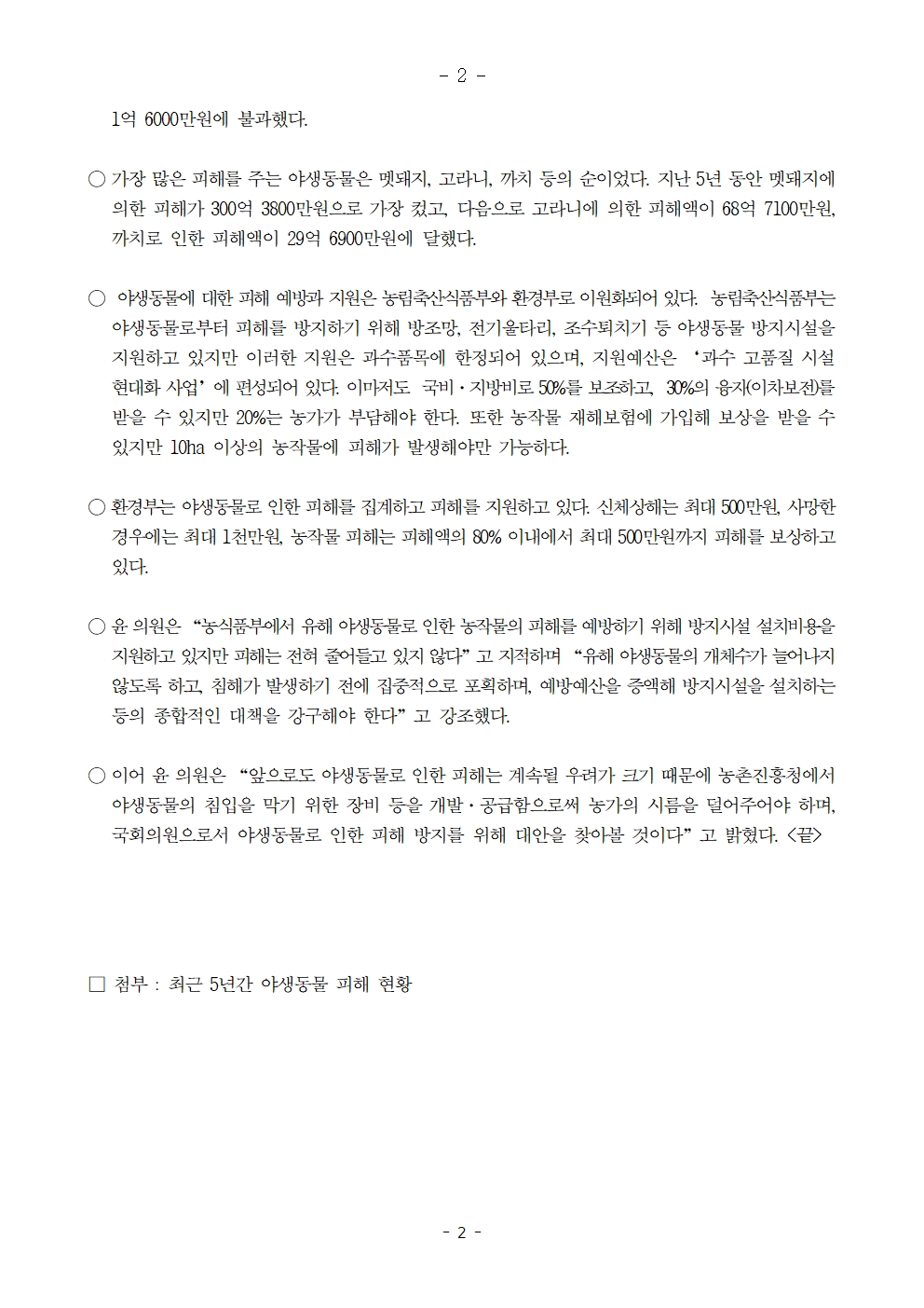 [윤준병 의원 국정감사 보도자료] 야생동물로 인한 농작물 피해 심각, 5년간 478억