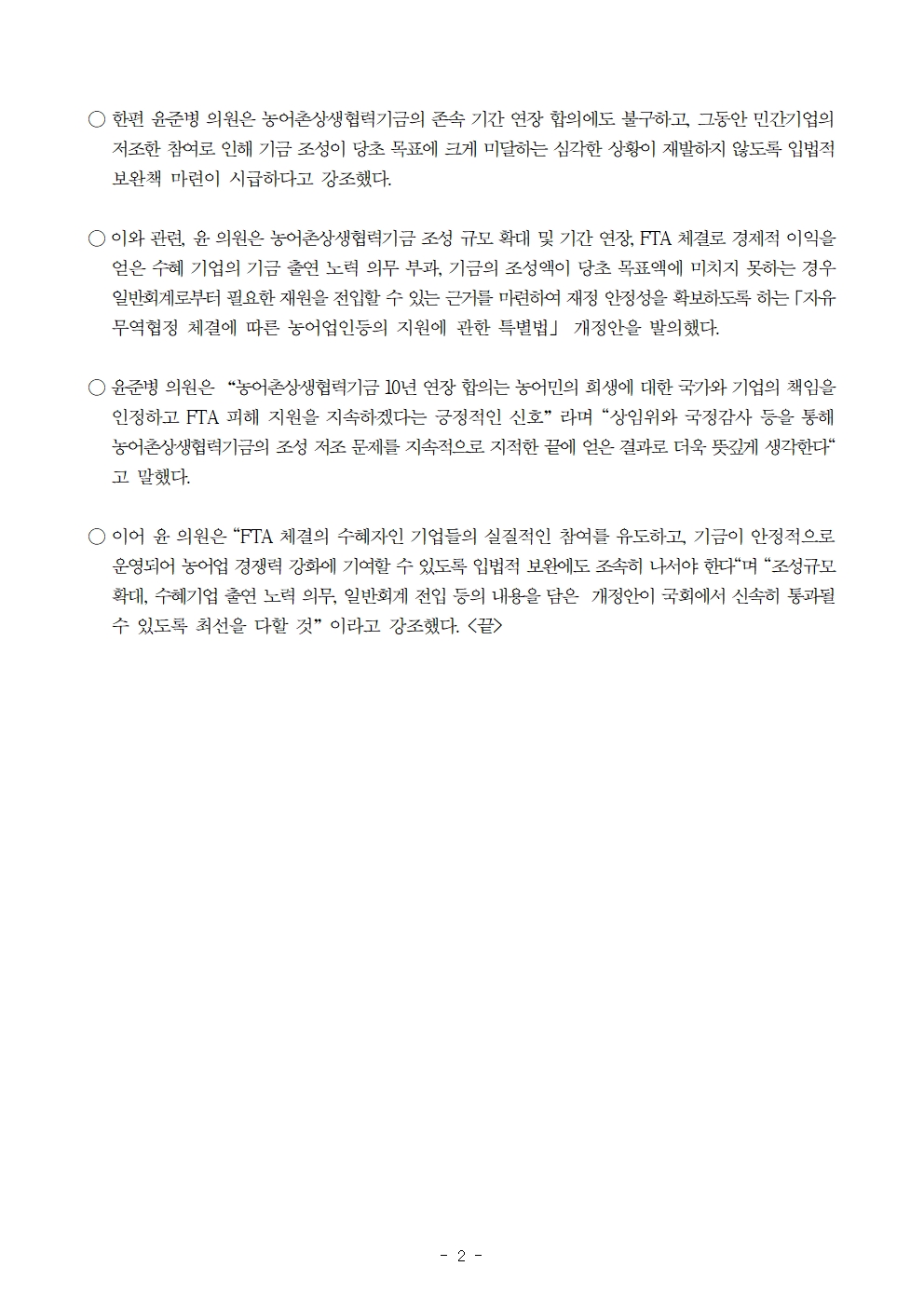 [윤준병 의원 국정감사 보도자료] 농어촌상생협력기금 10년 연장 합의 환영!