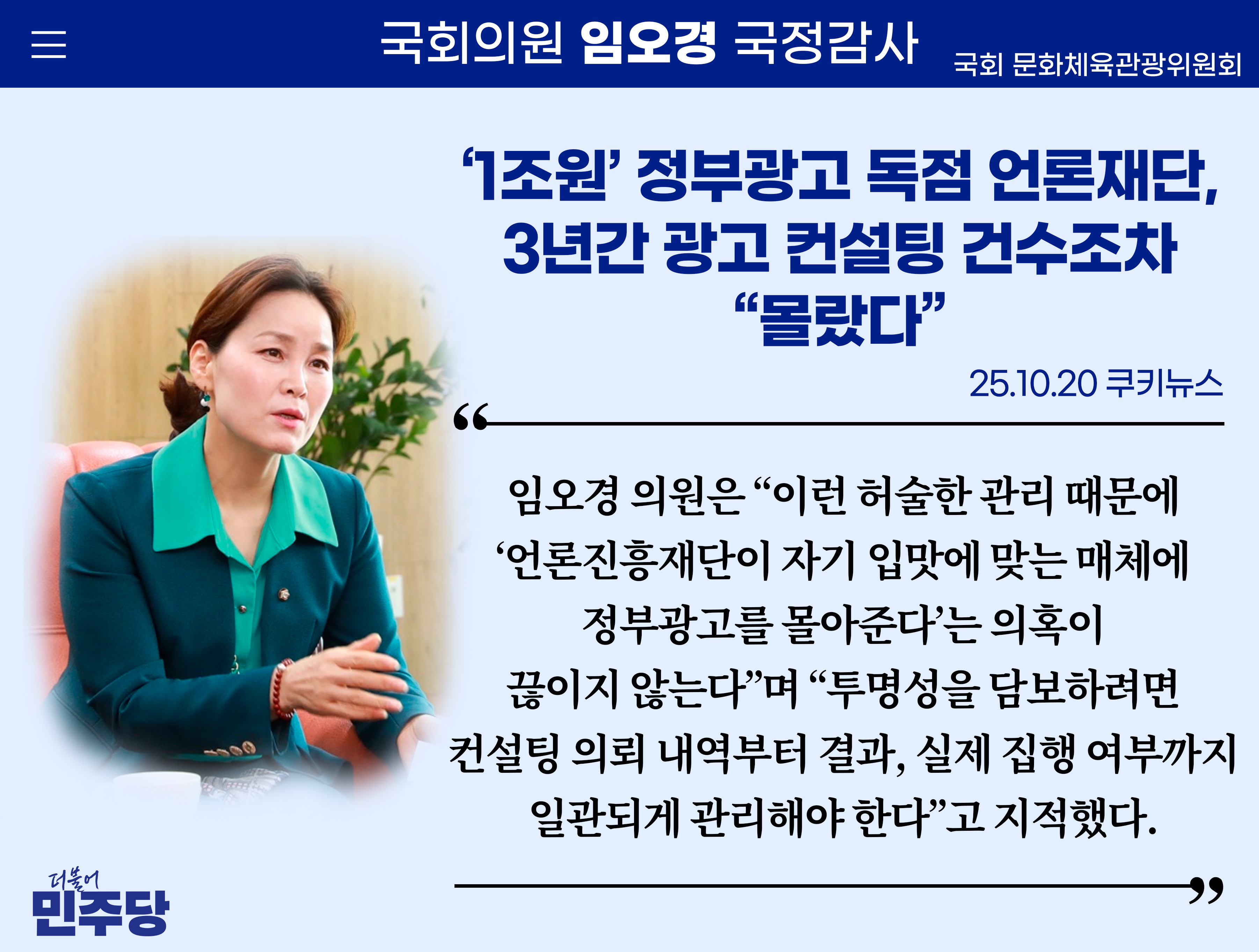 [임오경 카드뉴스] [단독] ‘1조원’ 정부광고 독점 언론재단, 3년간 광고 컨설팅 건수조차 “몰랐다”