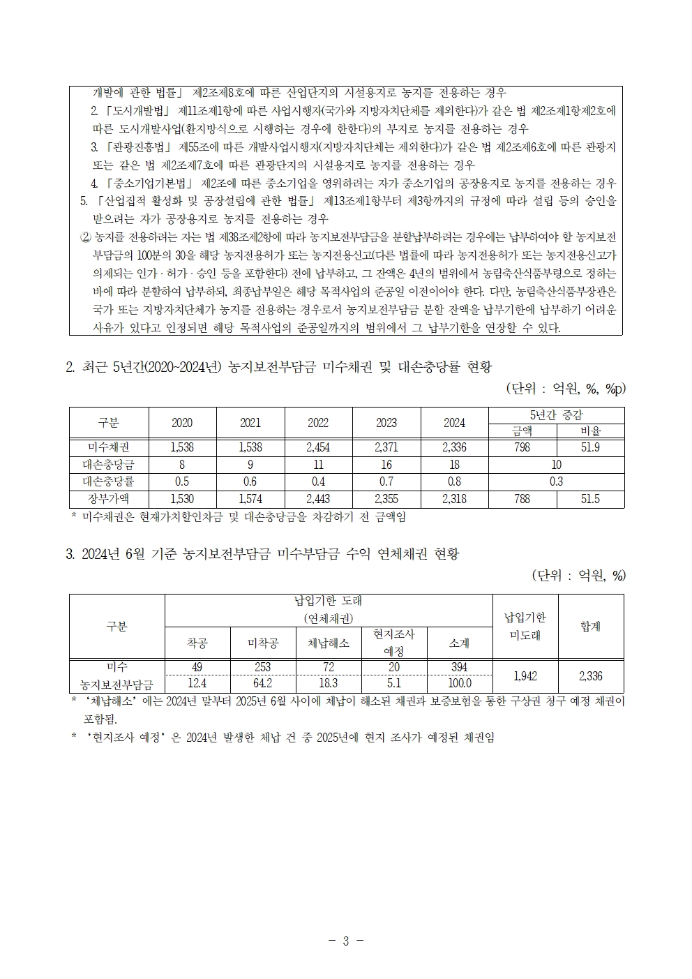 [윤준병 의원 국정감사 보도자료] 농어촌공사, 농지보전부담금 미수채권 5년 새 800억·52% 급증