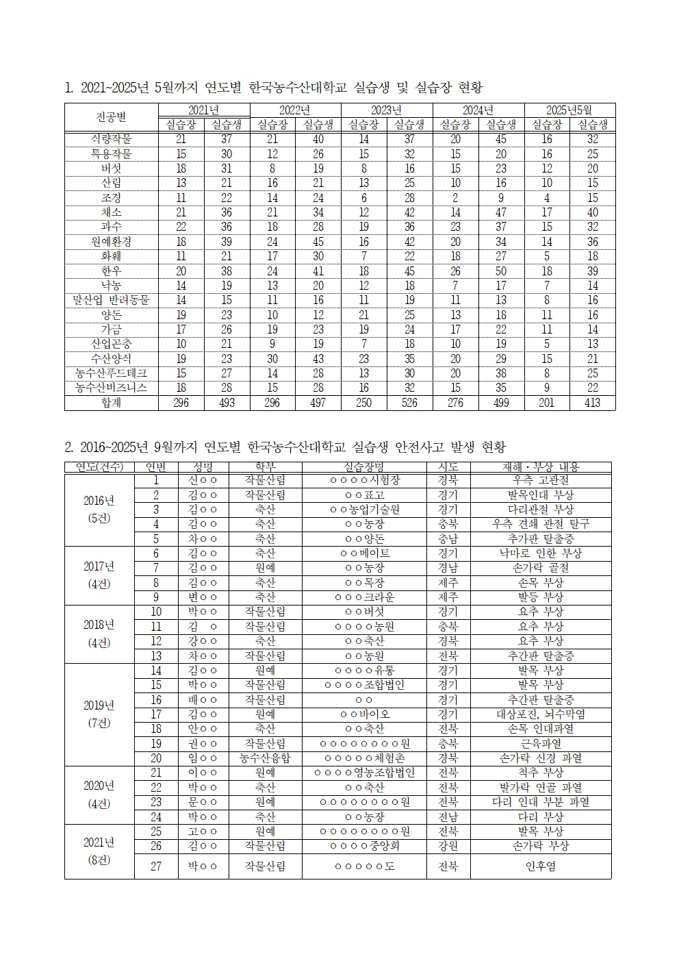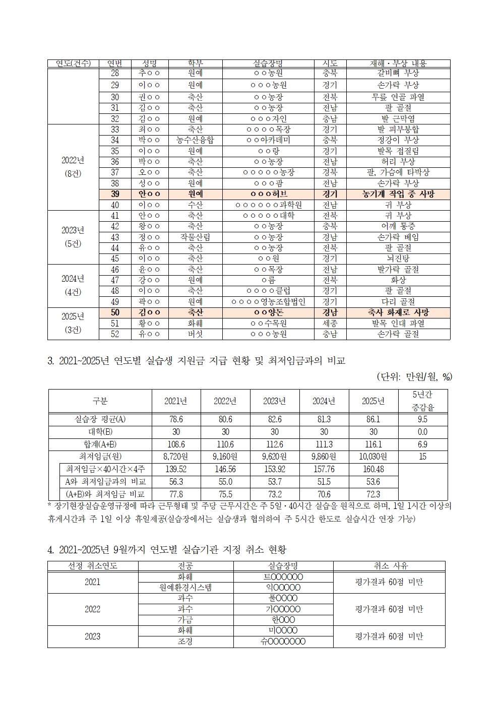 [윤준병 의원 국정감사 보도자료] 한국농수산대, 교육 빙자한 ‘위험노동’...10년간 현장실습서 52명 사상