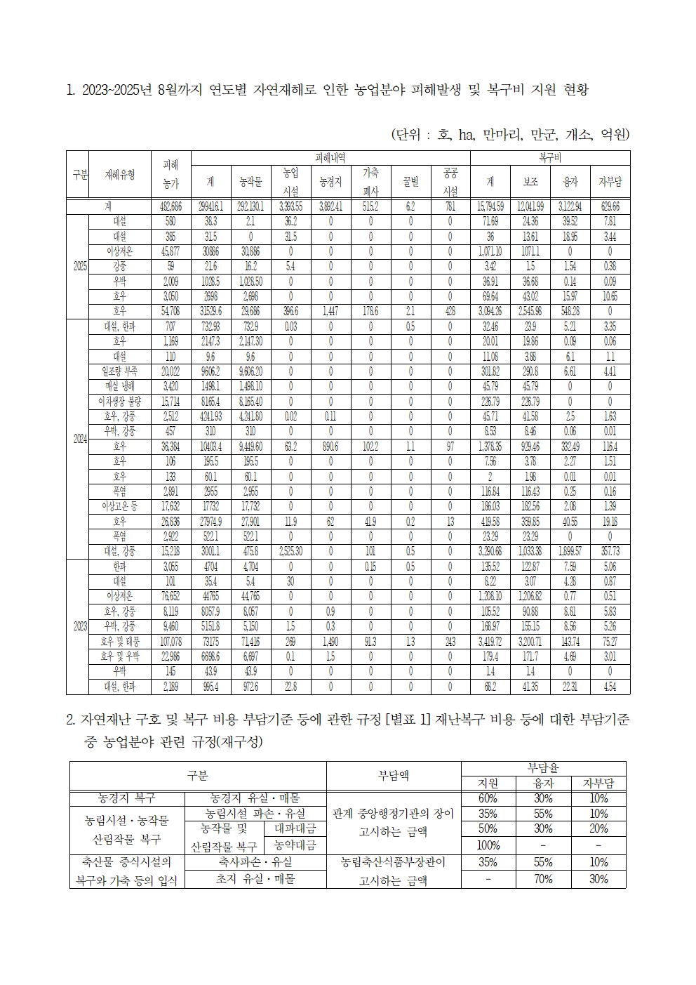 [윤준병 의원 국정감사 보도자료] 3년간 자연재해 피해농가 48만호, 피해면적 여의도의 1,032배 면적!
