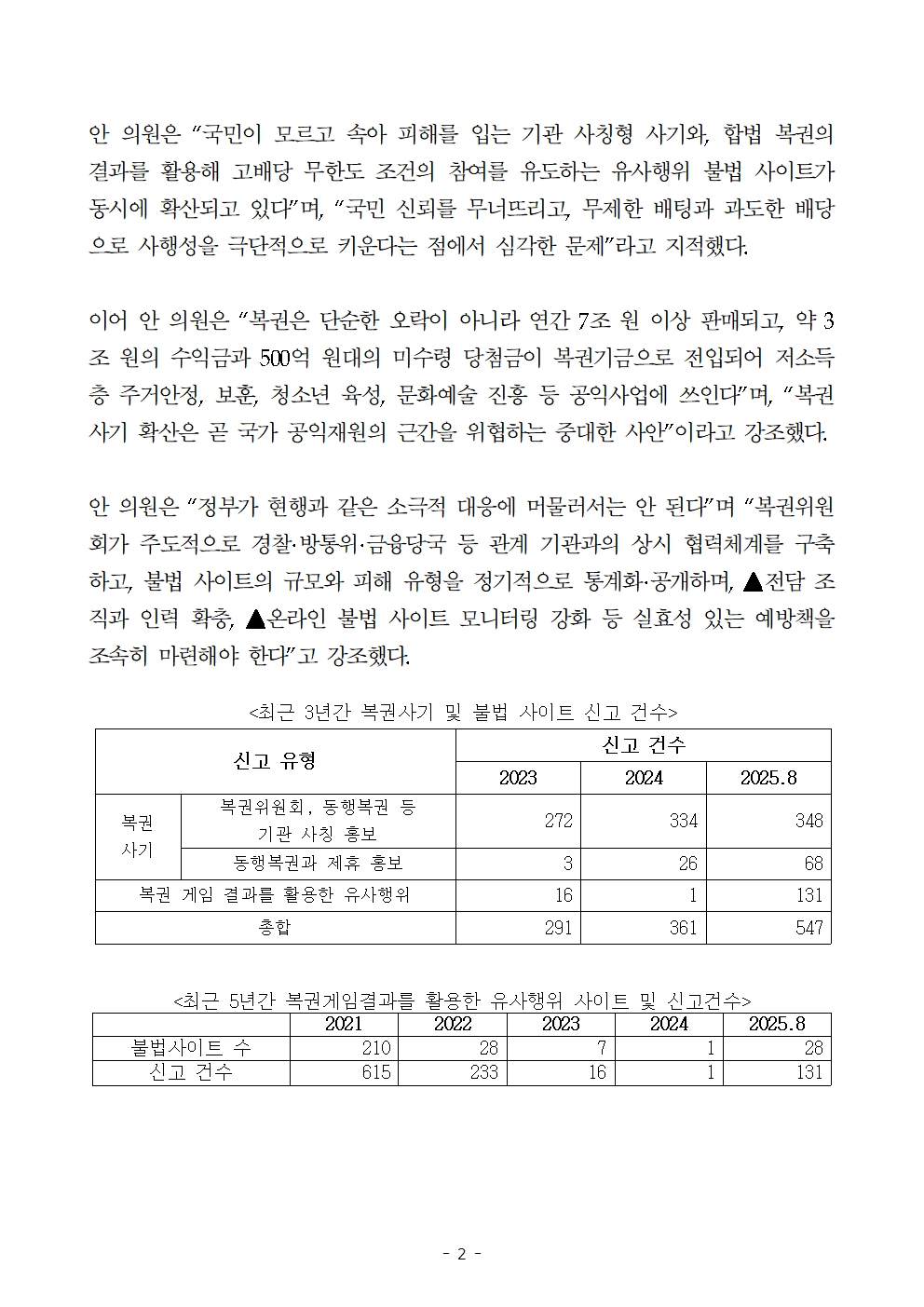 [국회의원 안도걸 보도자료] 복권위원회·동행복권 사칭 사기 3년새 2배 가까이 증가… 국민재산, 공익재원 위협