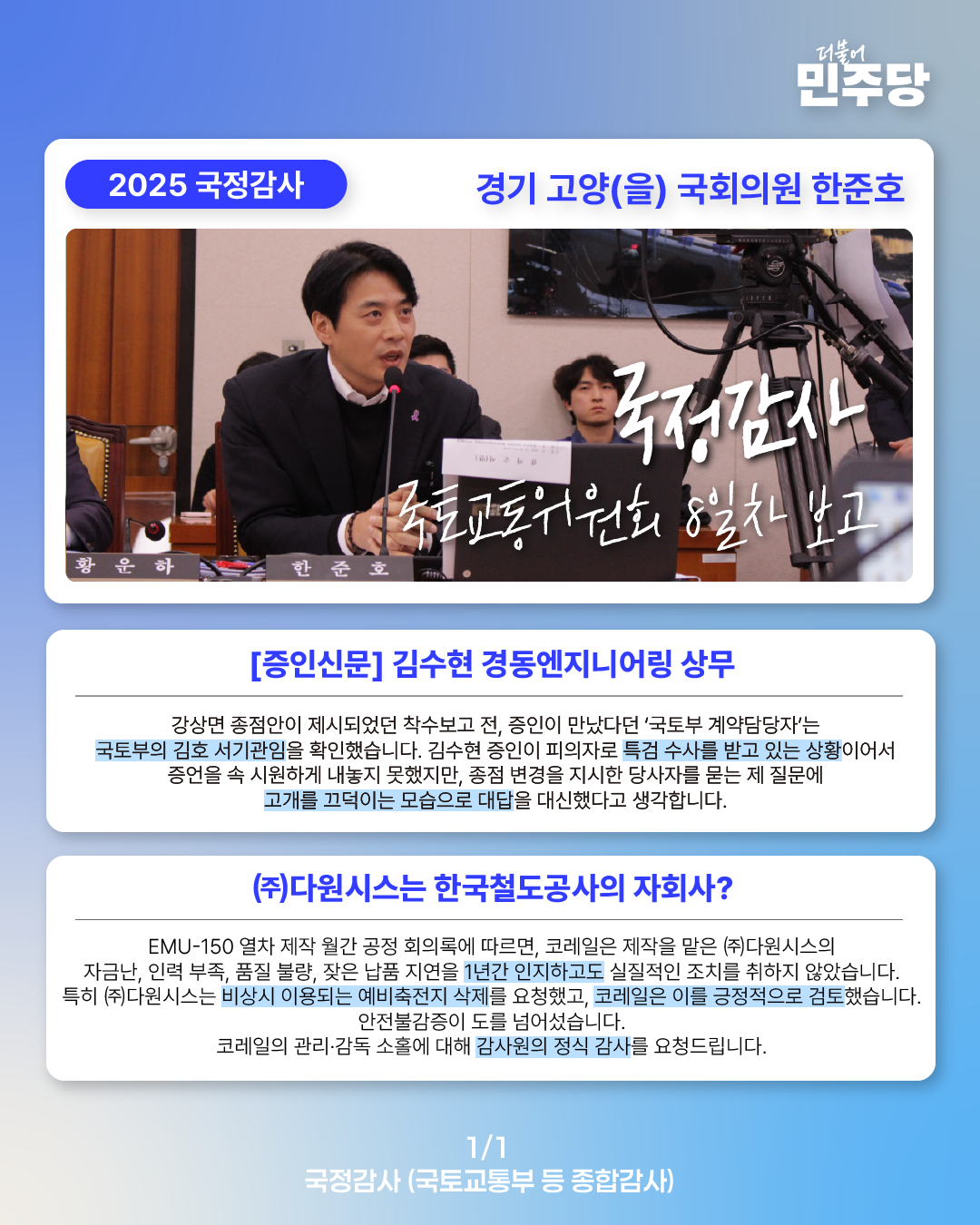 [국회의원 한준호 2025 국정감사 웹자보] 국정감사 8일차 보고