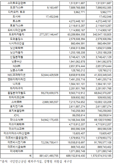 [강병원의원실]보도자료_국민연금, 日전범기업에 1조5천억 투자