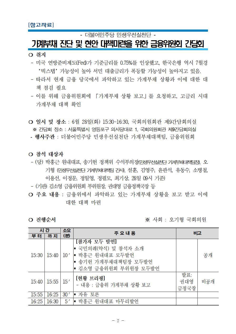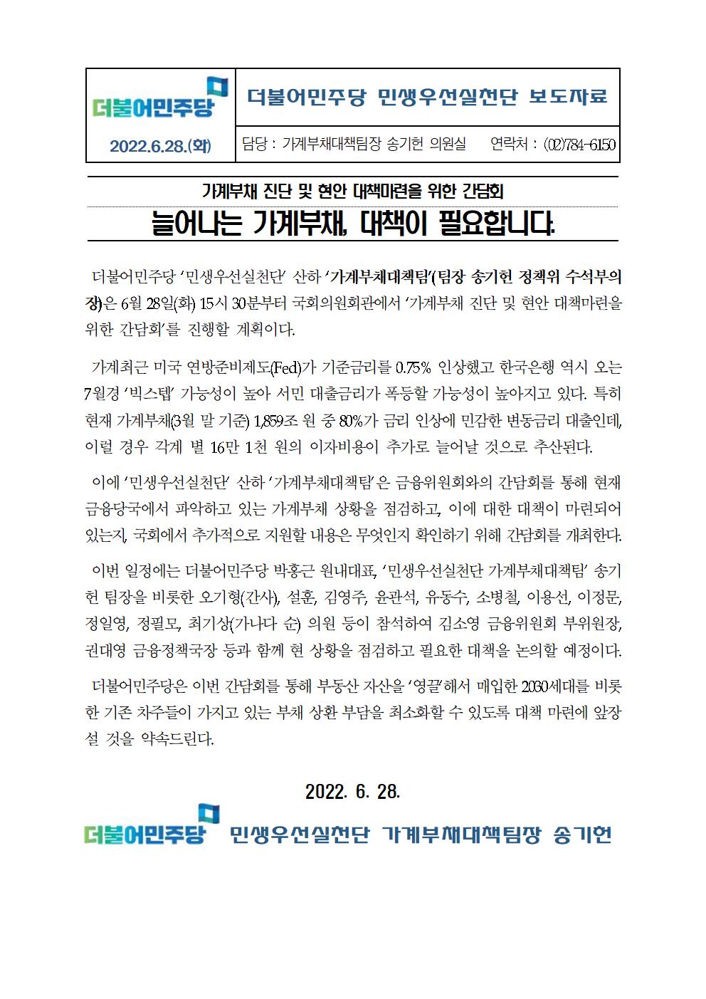[보도자료] 더불어민주당 민생우선실천단, 가계부채대책팀 가계부채 진단 및 현안 대책마련 간담회