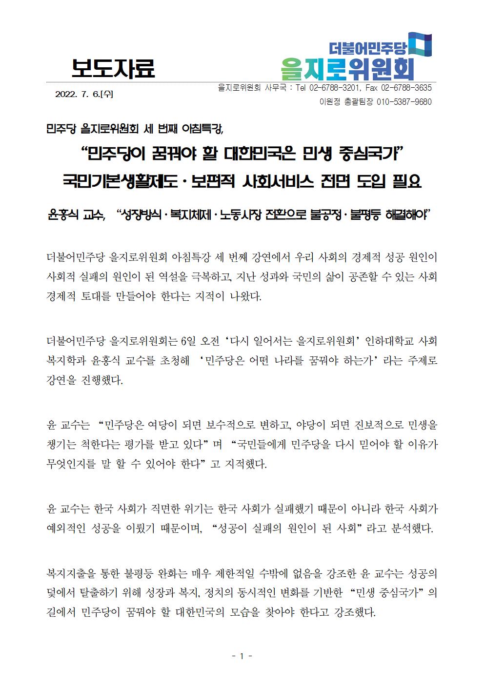 220706_보도자료_을지로위원회_아침특강,_민주당은_어떤_나라를_꿈꿔야_하는가.hwp