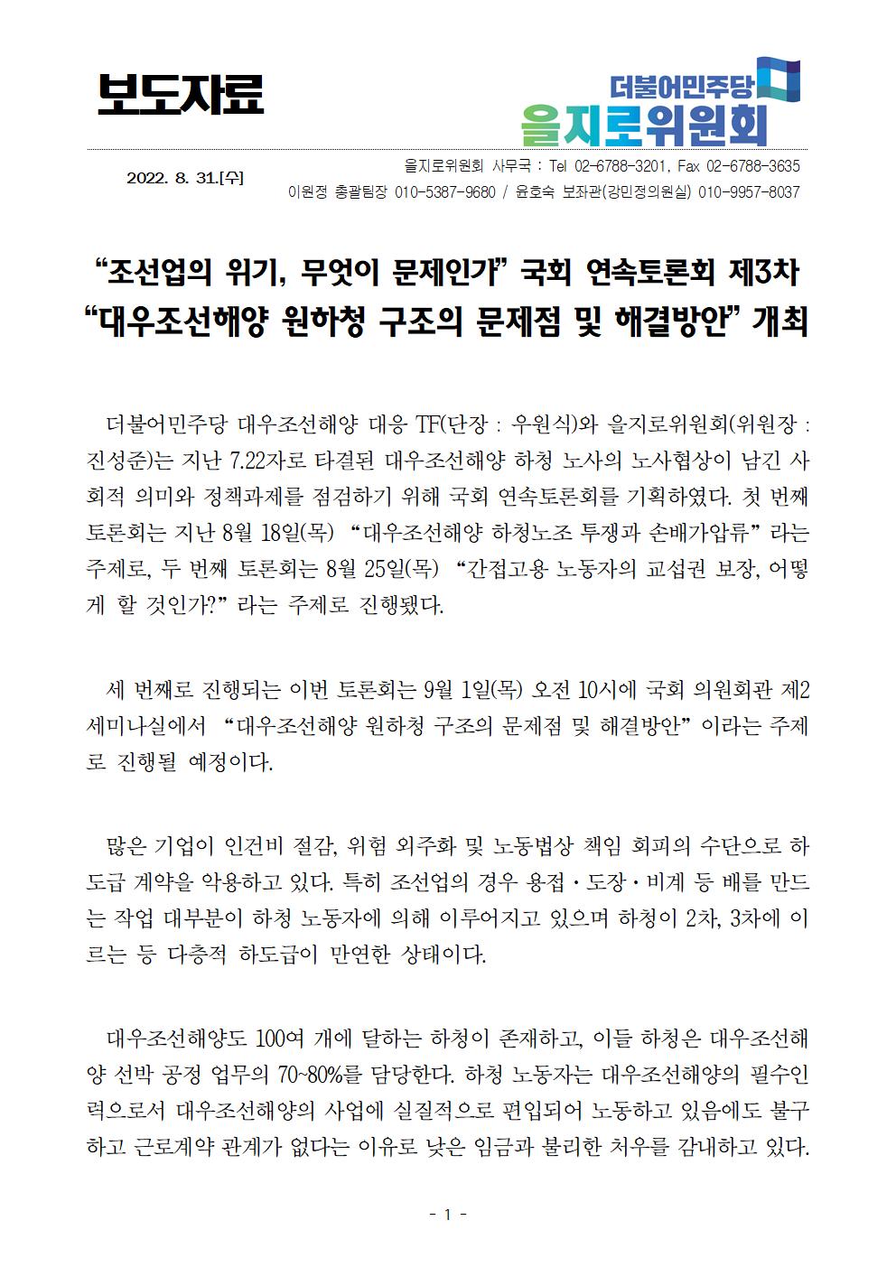 220901_을지로_보도자료_조선업의_위기_무엇이_문제인가_국회연속토론회_개최.hwp