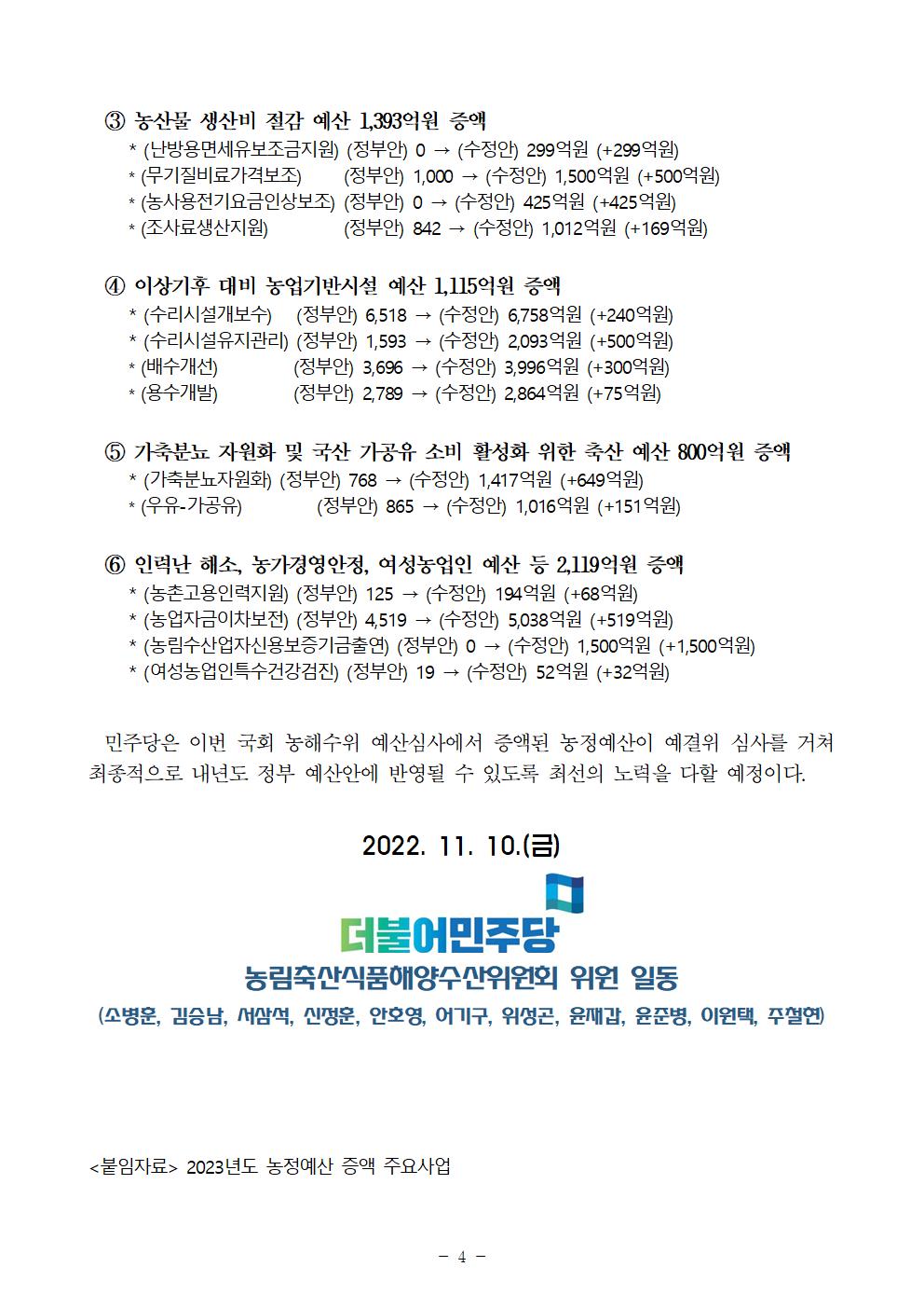 221110_(보도자료)_민주당_23년_농림분야_정부예산1조증액.pdf