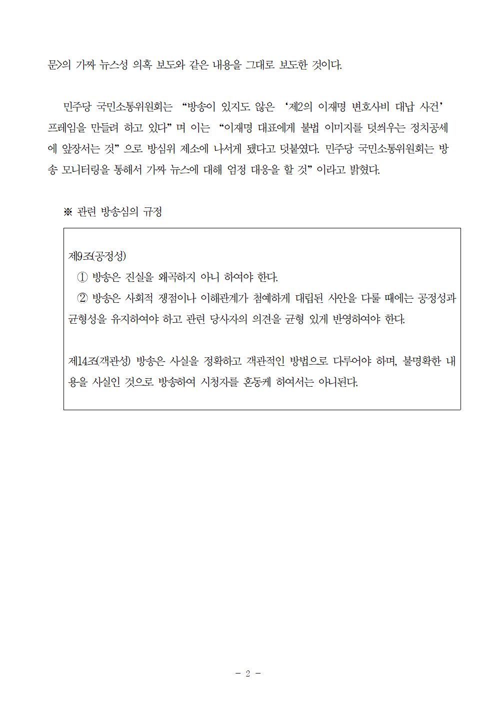 [보도자료] 더불어민주당 국민소통위원회, '민주당, TV조선 보도 방심위 제소'