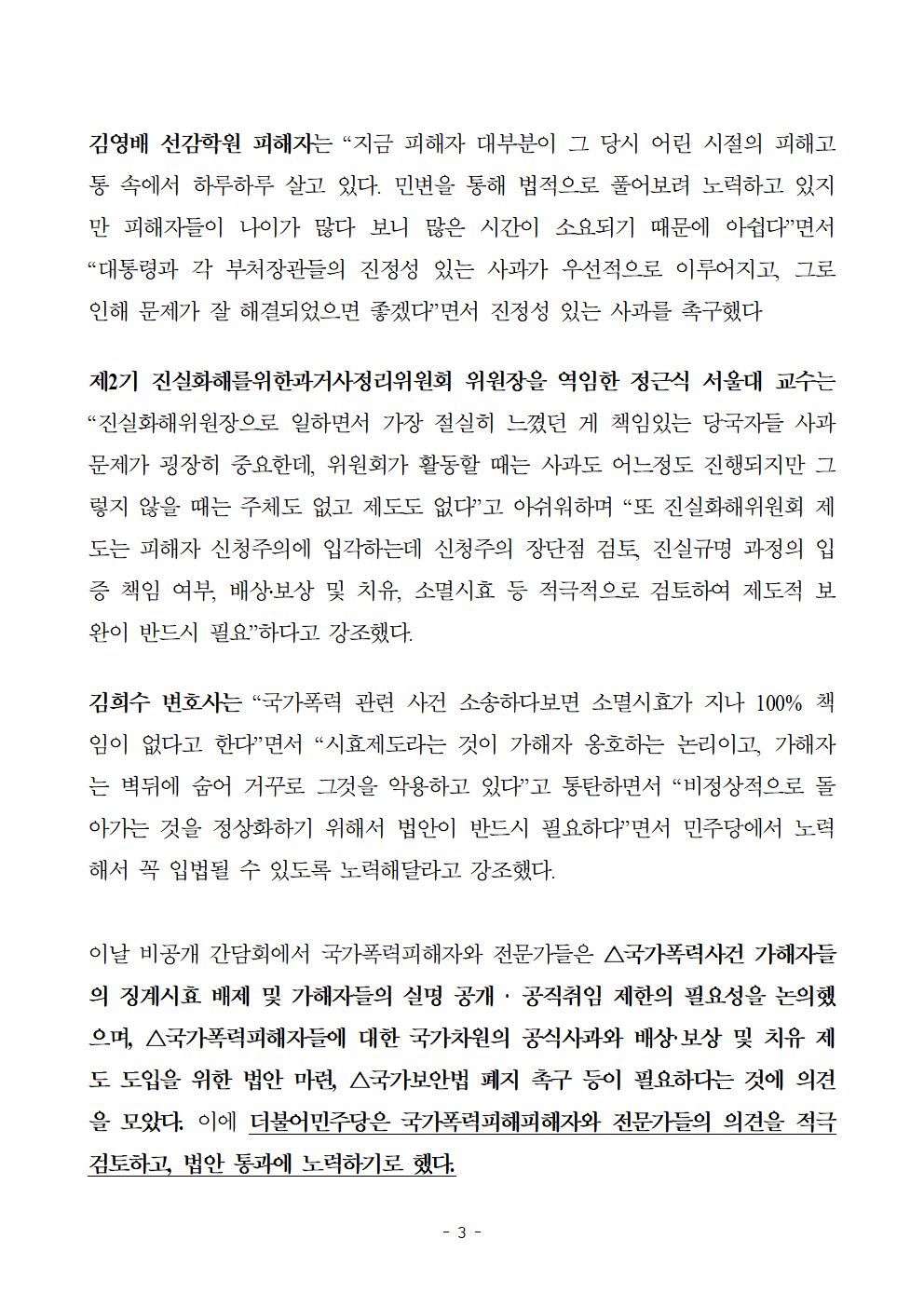 [보도자료] 더불어민주당 인권위원회, 국가폭력피해자 간담회 개최 완료