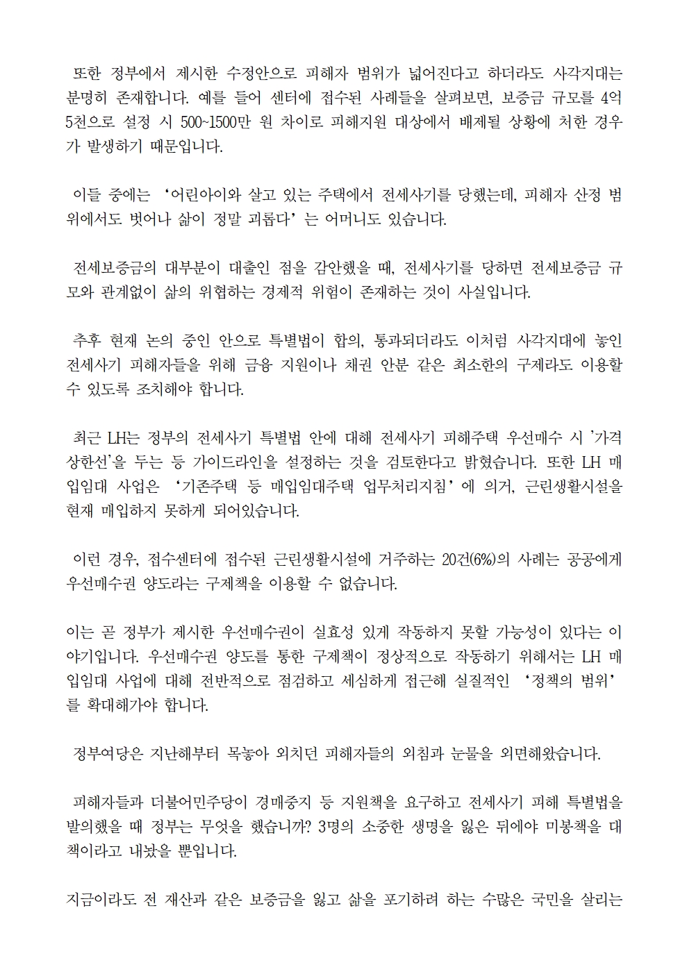 [기자회견문] 더불어민주당 을지키는민생실천위원회· 더불어민주당 전세사기 고충접수 센터 허종식·권지웅 센터장, 더불어민주당 전세사기 피해고충 온라인 접수센터 운영 현황 보고