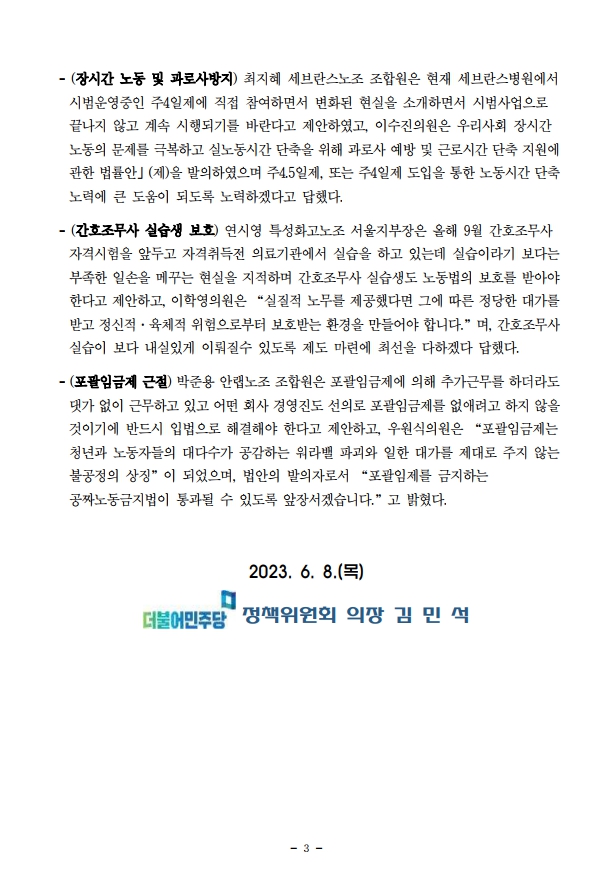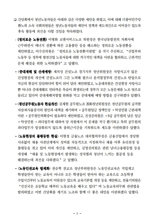 [보도자료] 더불어민주당 정책위원회, '청년노동자가 묻고, 민주당이 답하다' 개최