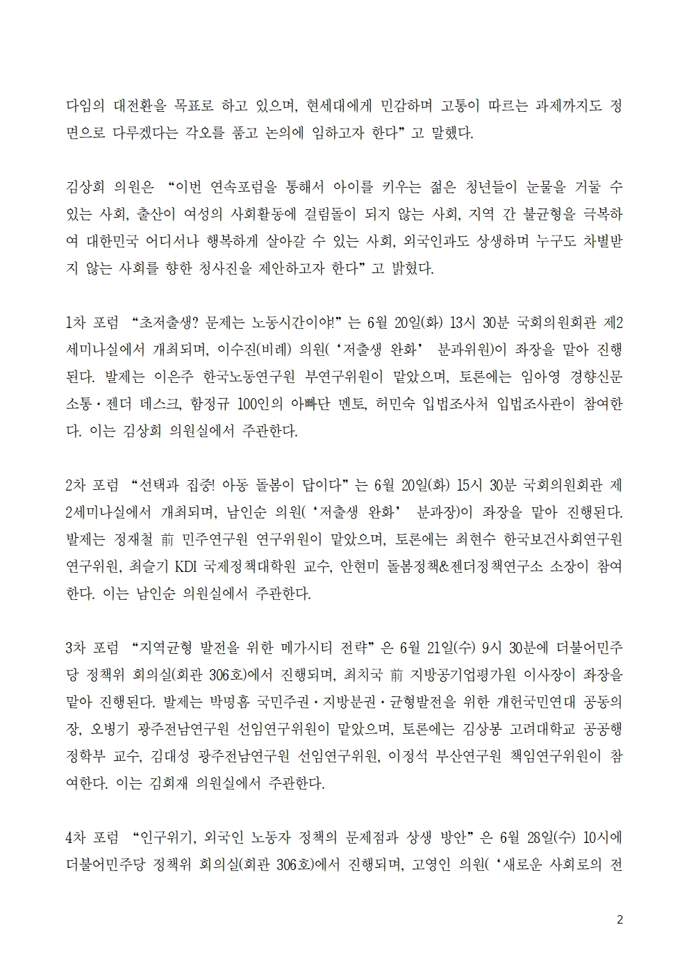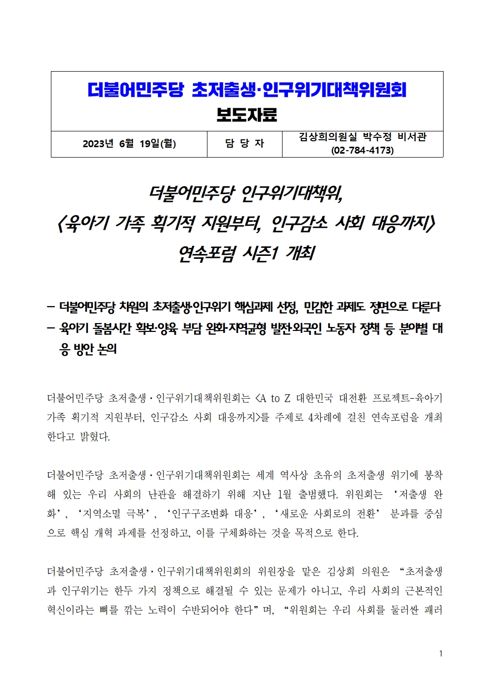 20230619_민주당_인구위기대책위_보도자료육아기_획기적_지원-인구감소_대응_연속포럼_시즌1_개최.hwp