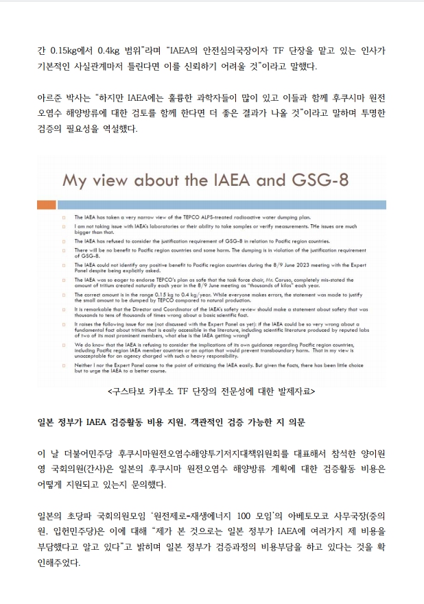 [보도자료] 더불어민주당 후쿠시마원전오염수해양투기저지대책위원회, IAEA가 만든 일반안전지침(GSG), IAEA 스스로 적용 거부