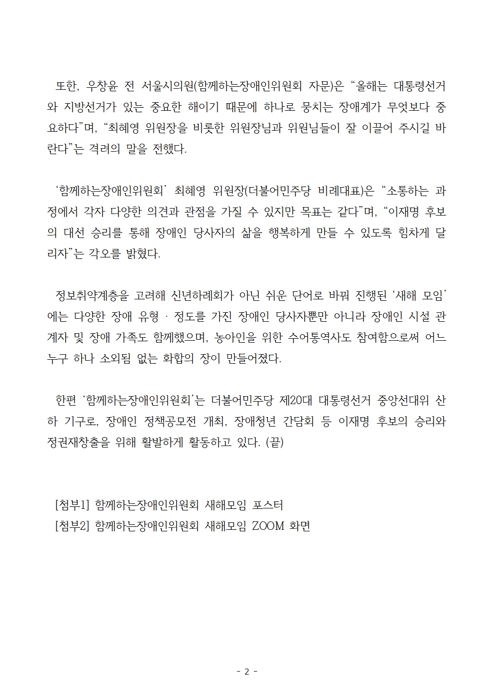 [보도자료] 더불어민주당 선대위 함께하는장애인위원회, '2022 임인년 새해모임' 개최