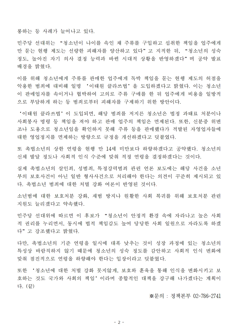[보도자료] 더불어민주당 선대위 정책본부, '이재명은 합니다. 소확행 공약 시리즈 54' 나이 속인 음주 청소년 처벌 및 촉법소년 연령 하향 공약 발표